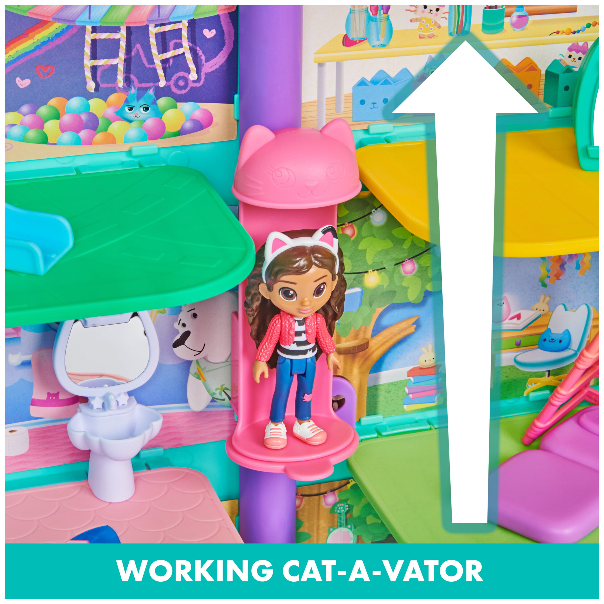 Gabby-s Dollhouse. Purrfect Dollhouse 2-Foot Tall Playset with Sounds. 15 Pieces
