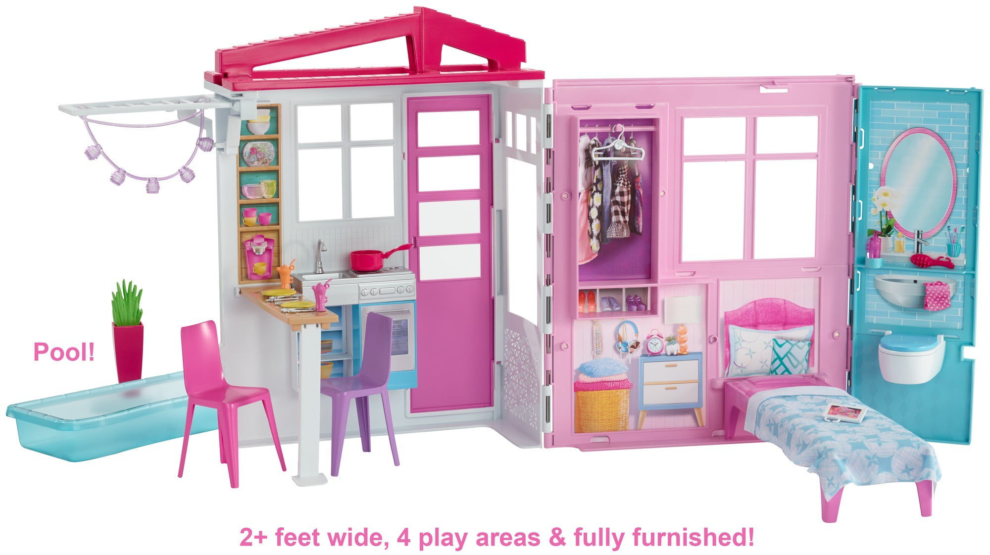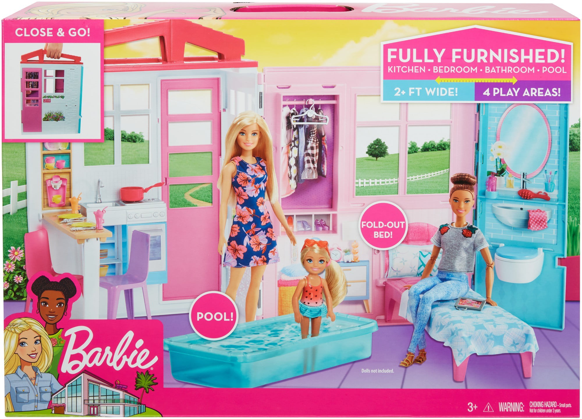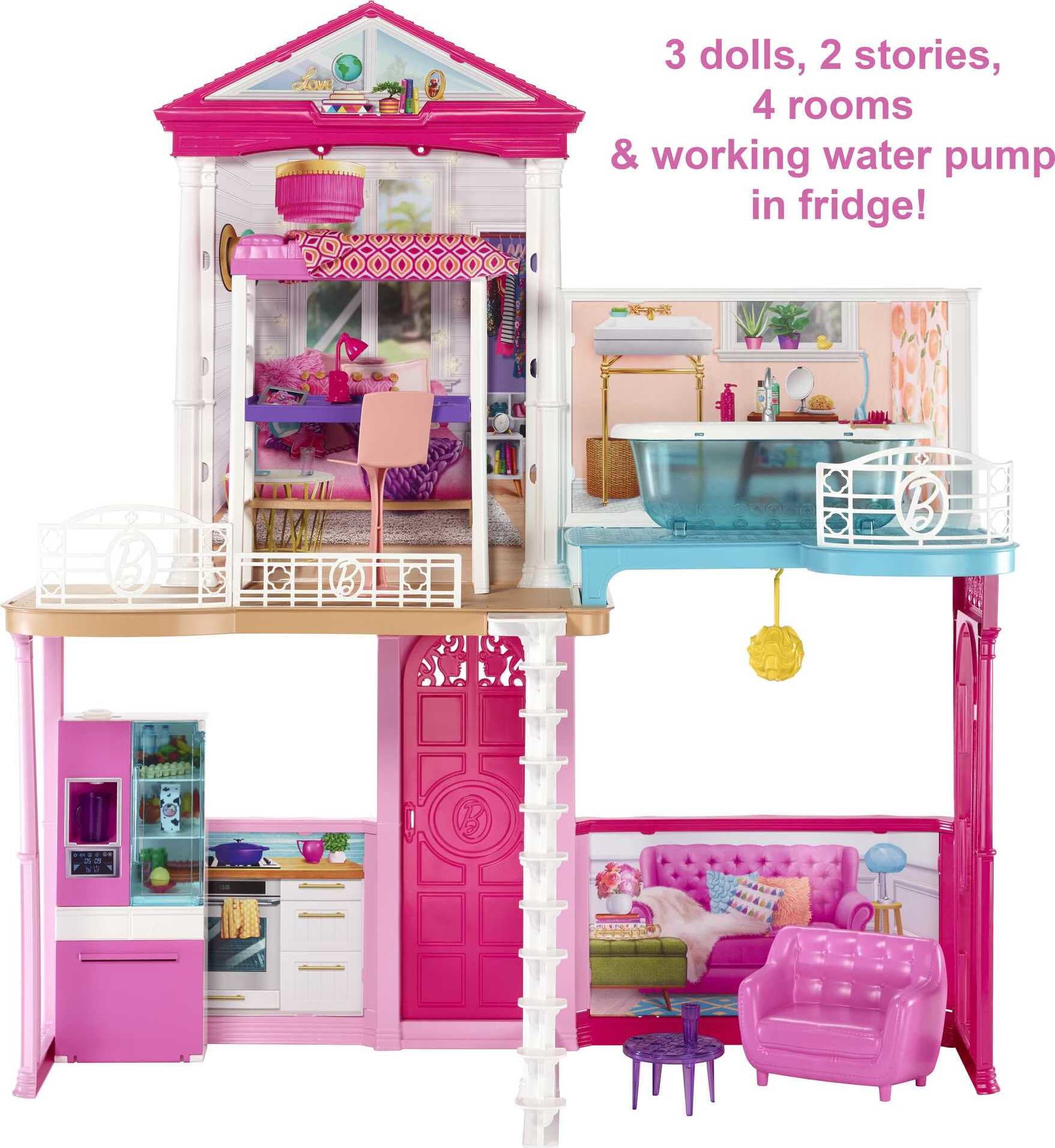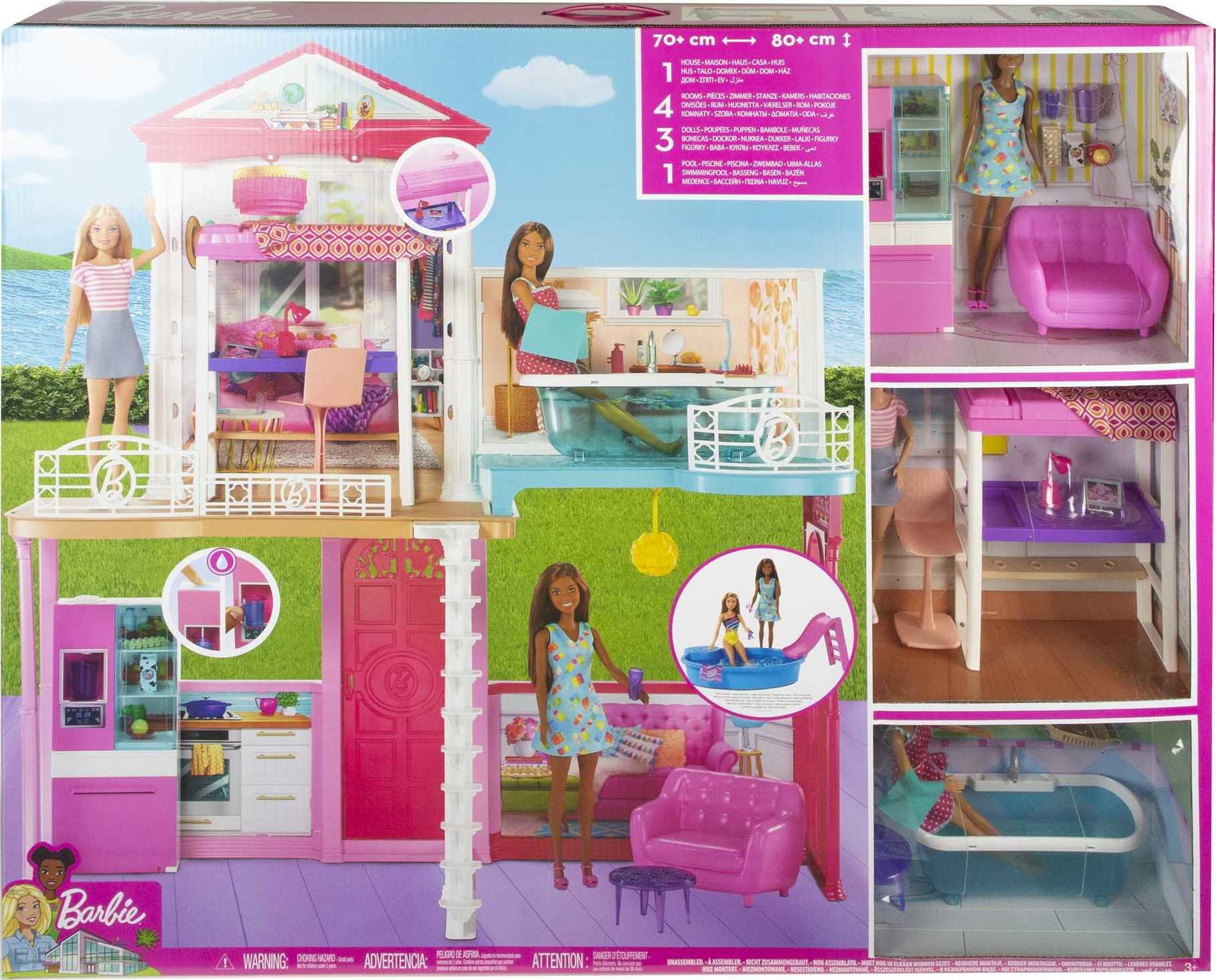 Barbie Dollhouse Set with 3 Dolls and Furniture. Pool and Accessories