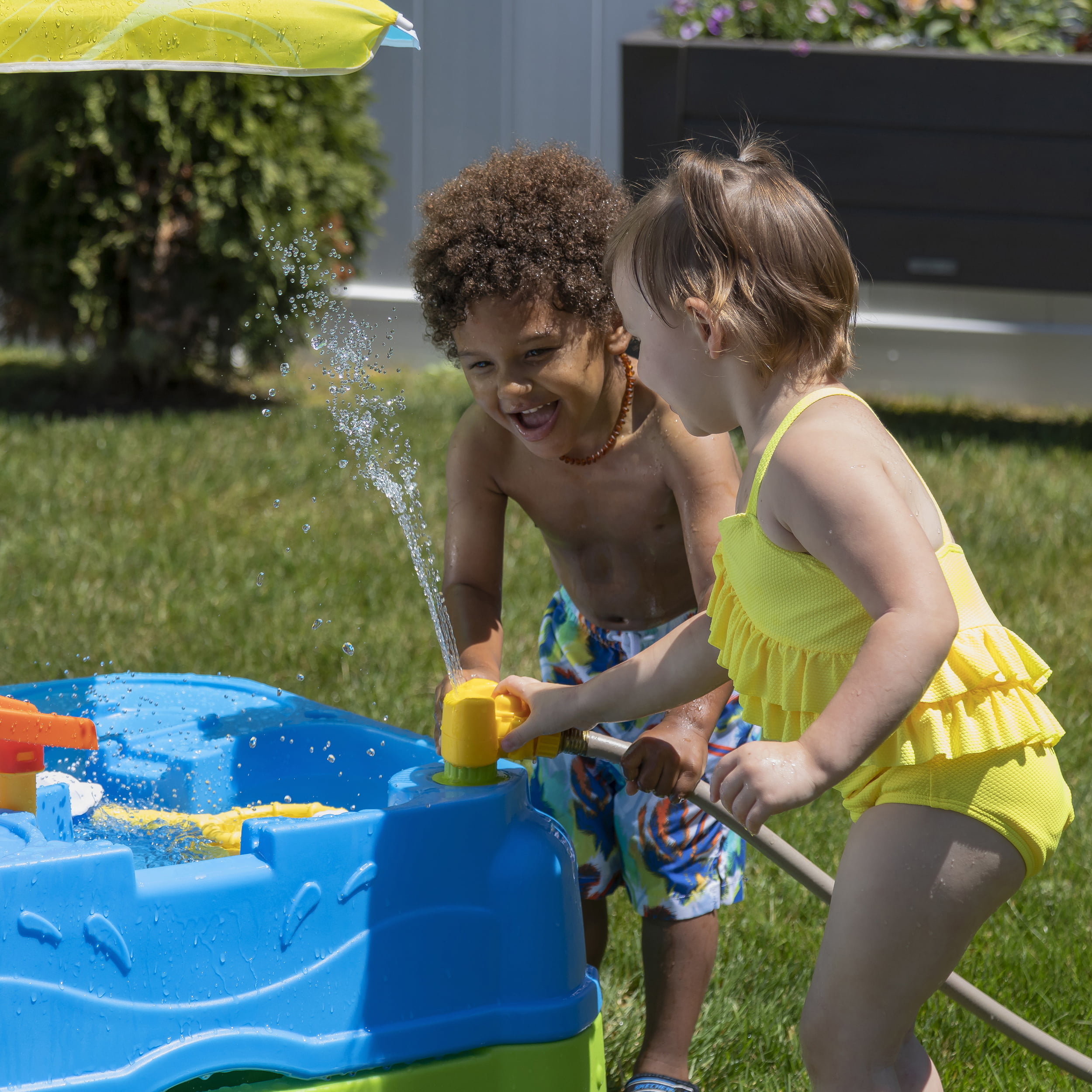 Step2 Waterpark Wonders Two-Tier Water Table for Toddler with Umbrella