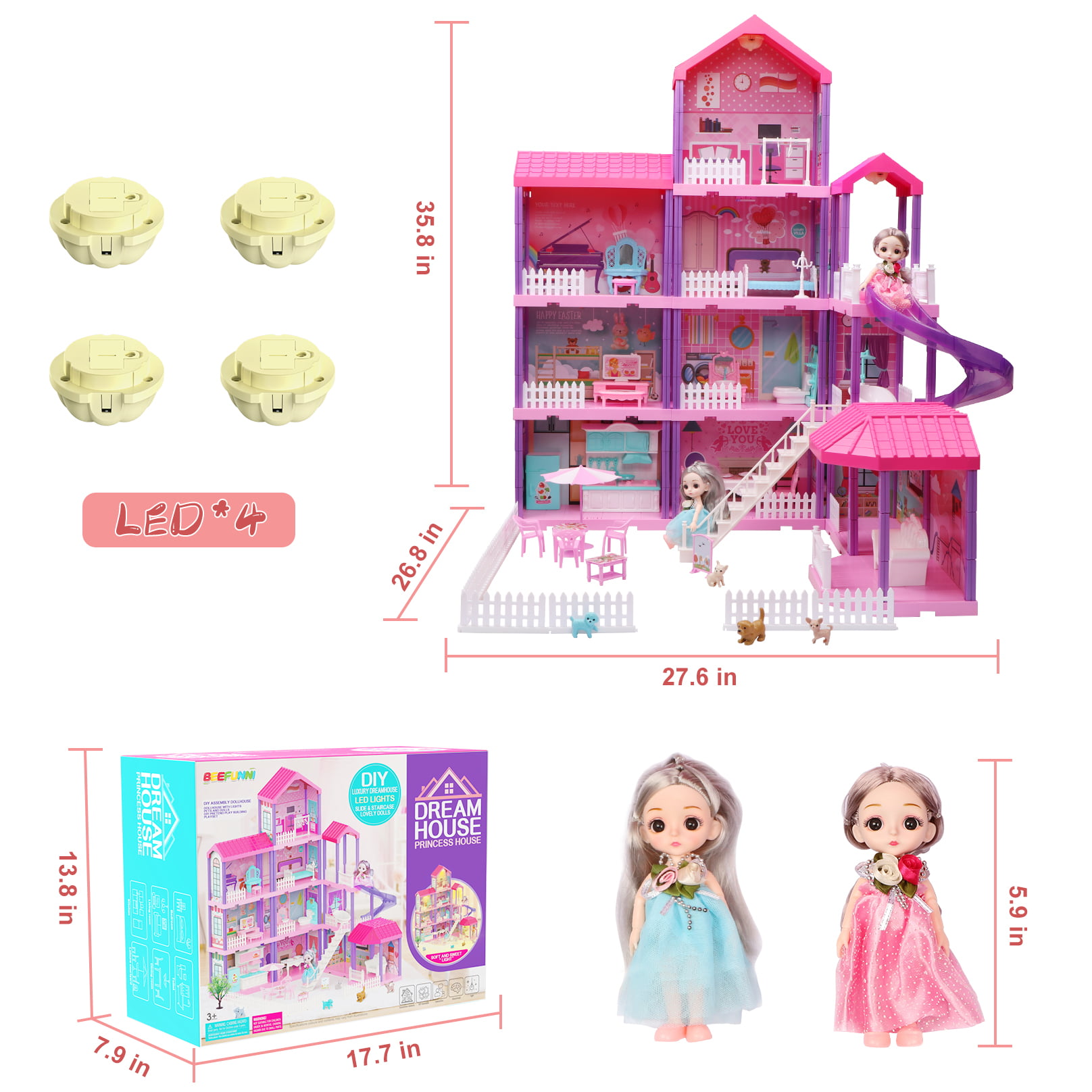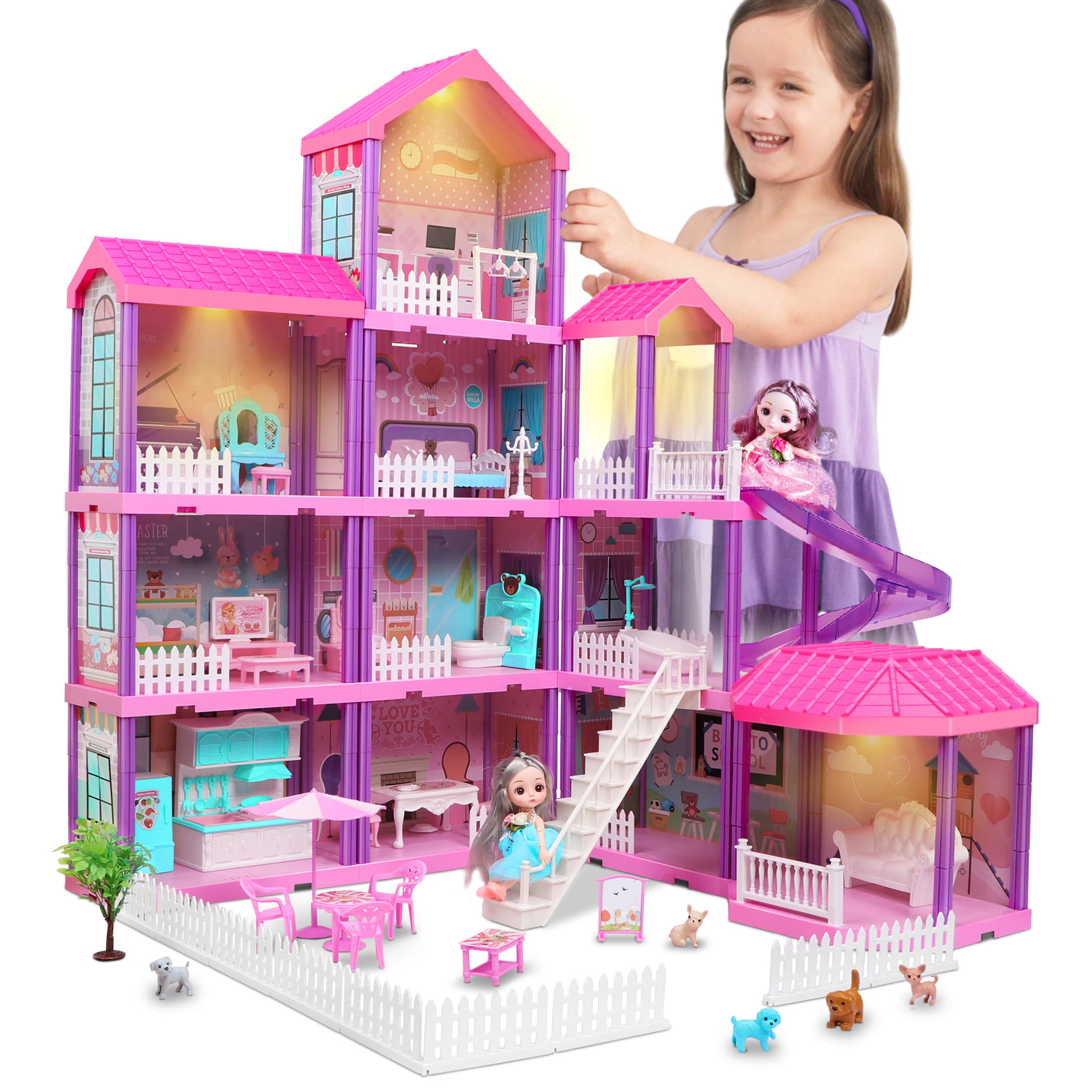 Beefunni 36 inch Dollhouse. with Slide. Dolls and 11 Rooms. Creative Dollhouse Toys for Girls. Gift for 3 to 8 Year Old. Assembly Required