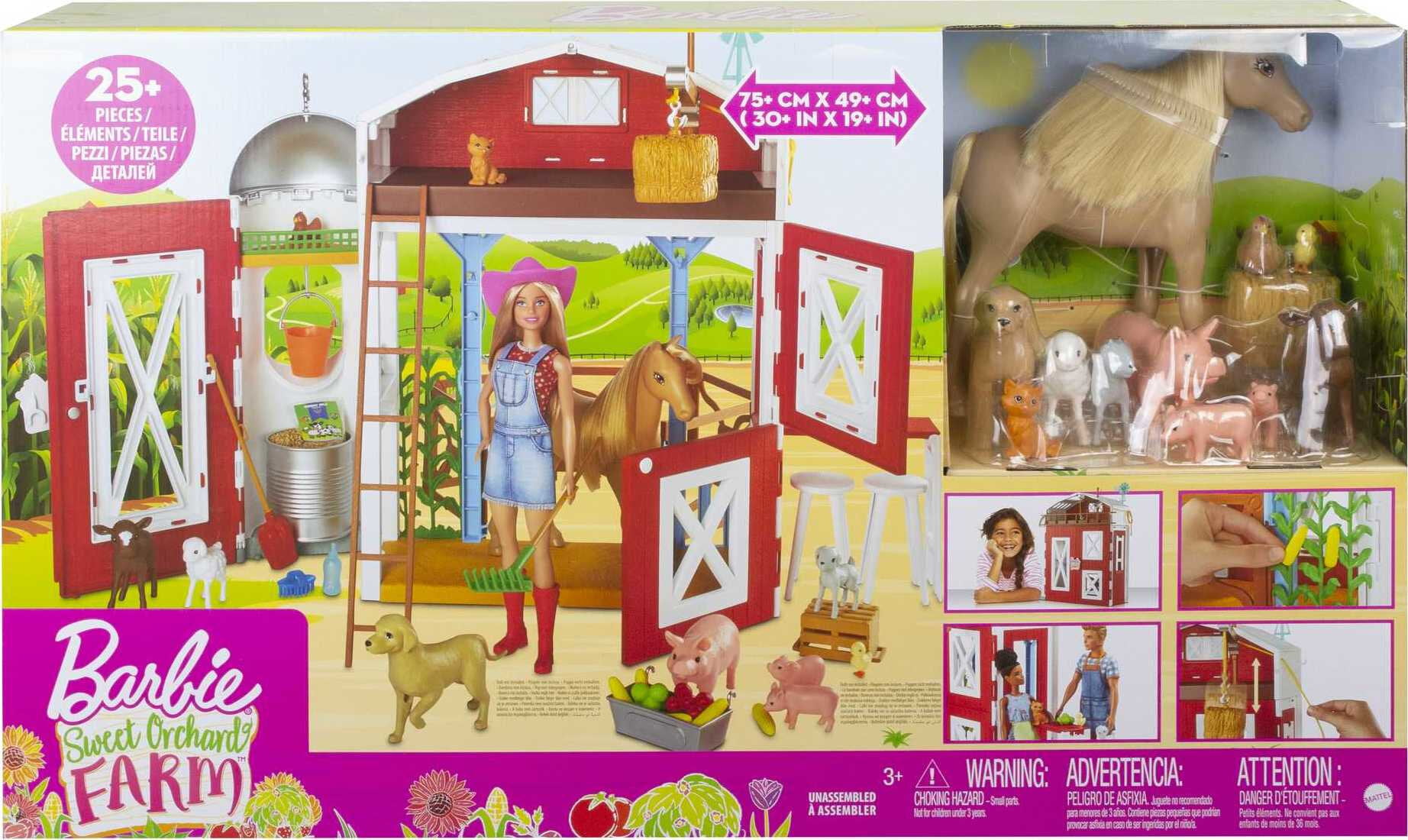Barbie Sweet Orchard Farm Playset with Barn. Horse. 10 Farm Animals & 15 Accessories. Moving Pieces
