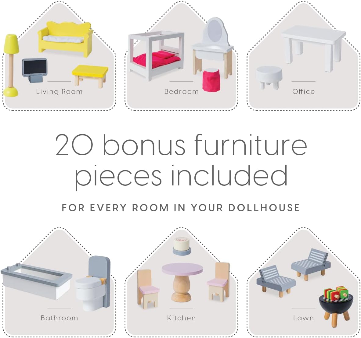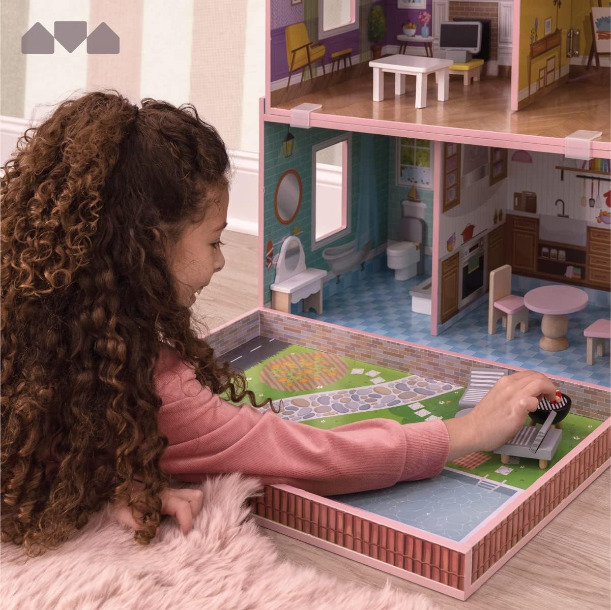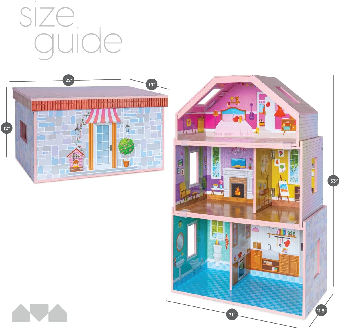 Milliard Nesting Dollhouse. Stack Mode (33x21x11.5in) & Store Mode (22x14x12in). Wooden Kids Dollhouse. 20 Bonus Furniture Pieces Included. Unique Design Patent Pending