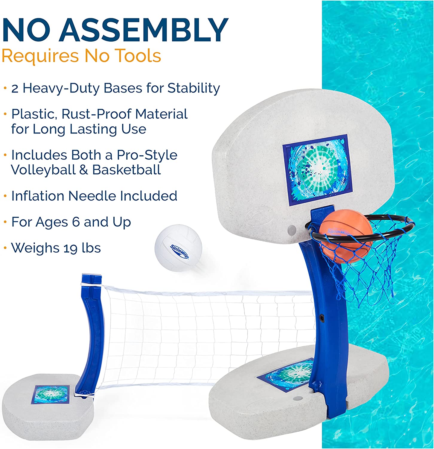 GoSports Splash Hoop Swimming Pool Basketball Game. Includes Poolside Water Basketball Hoop. 2 Balls and Pump. Red