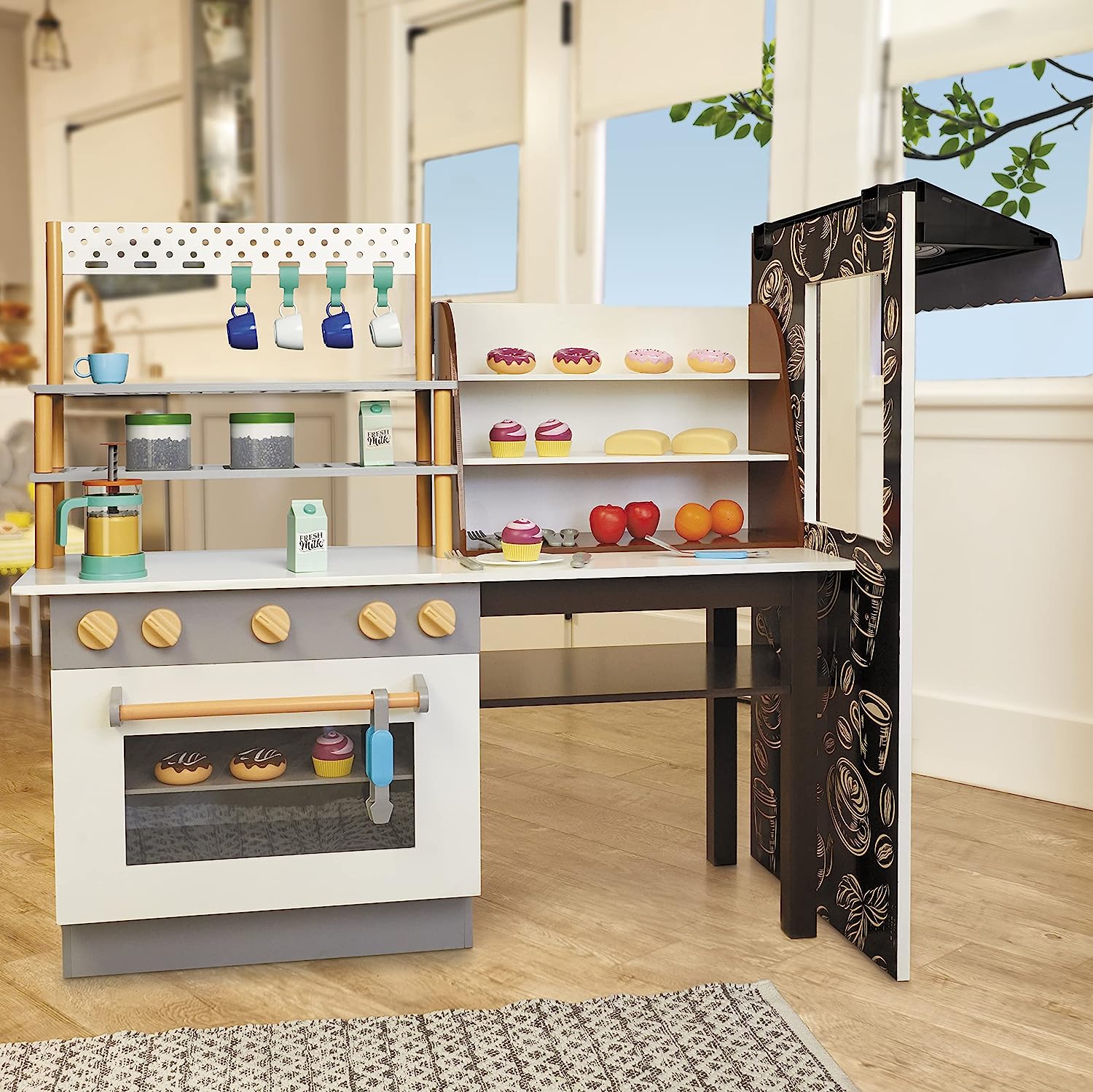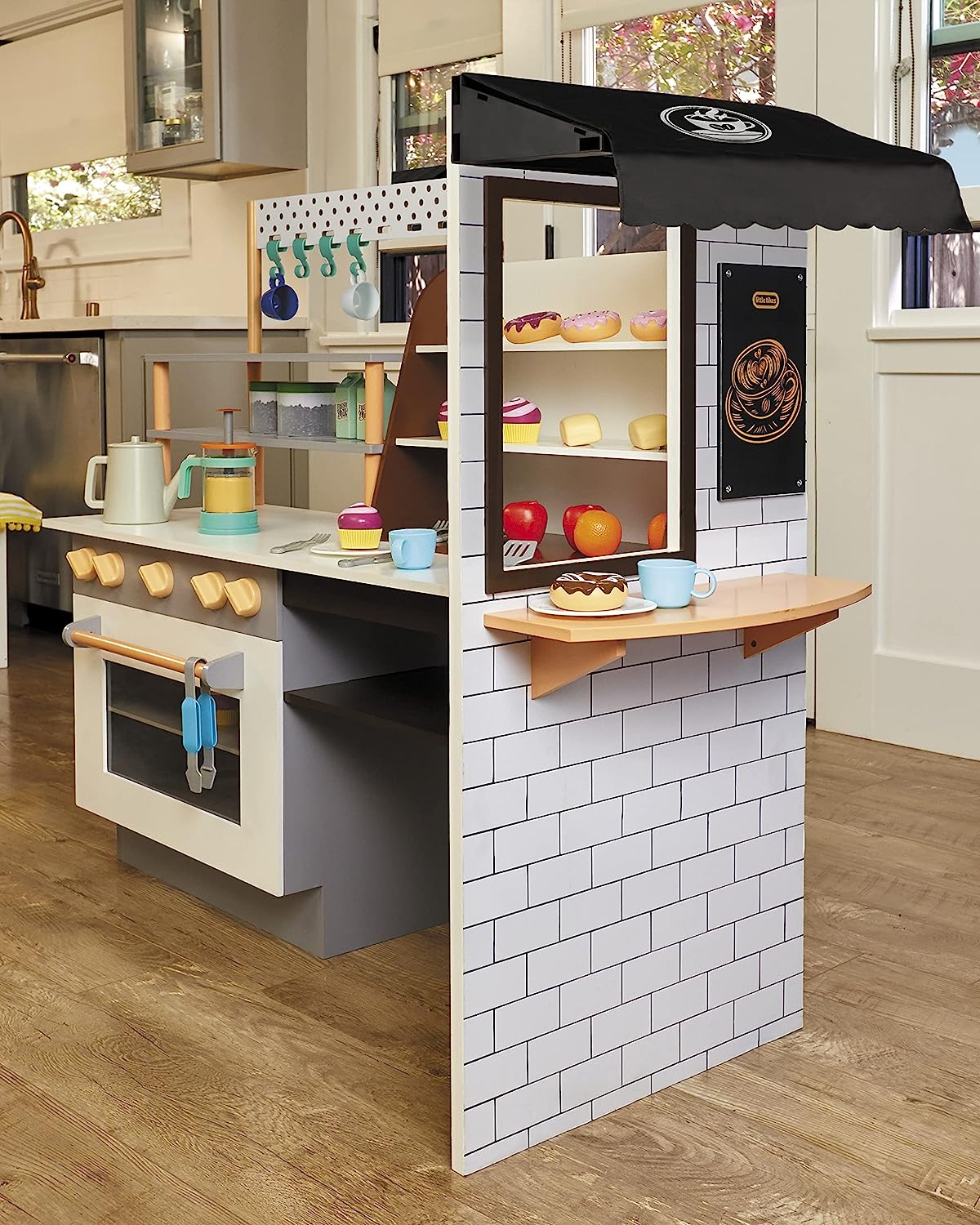 Little Tikes Real Wood Café & Bakery Exclusive Wooden Play Kitchen with Realistic Lights Sounds and Dual-Sided. 20+ Accessories Set- Gift for Kids. Toy for Girls Boys Ages 3 4 5+ Years