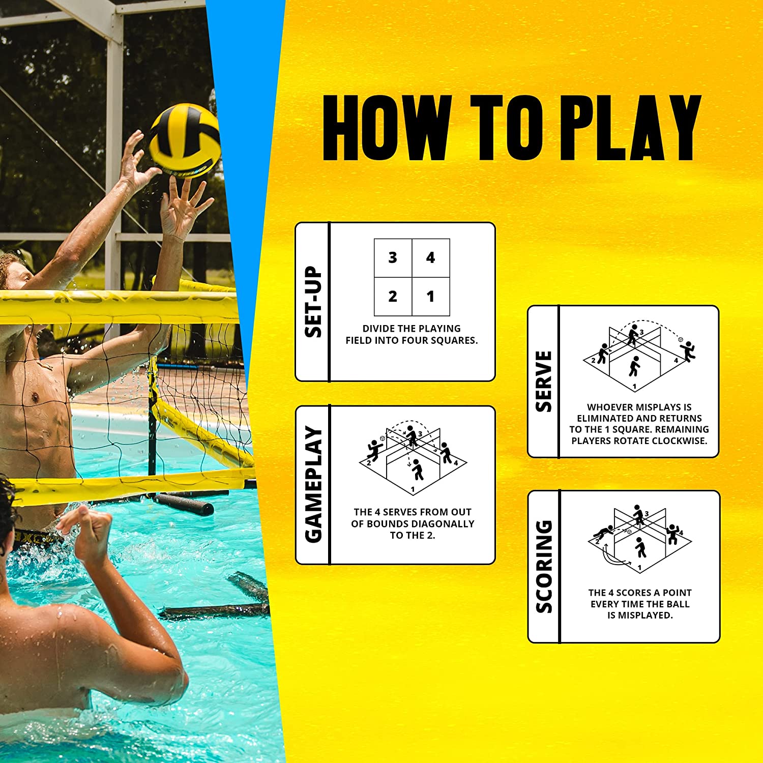 CROSSNET H2O Volleyball Pool Game for Adults and Family - Four Square Net Pool Game - Quick Assemble & Portable - Pool Volleyball Set for Inground Pools - Perfect Pool Toys for All Ages W/Accessories