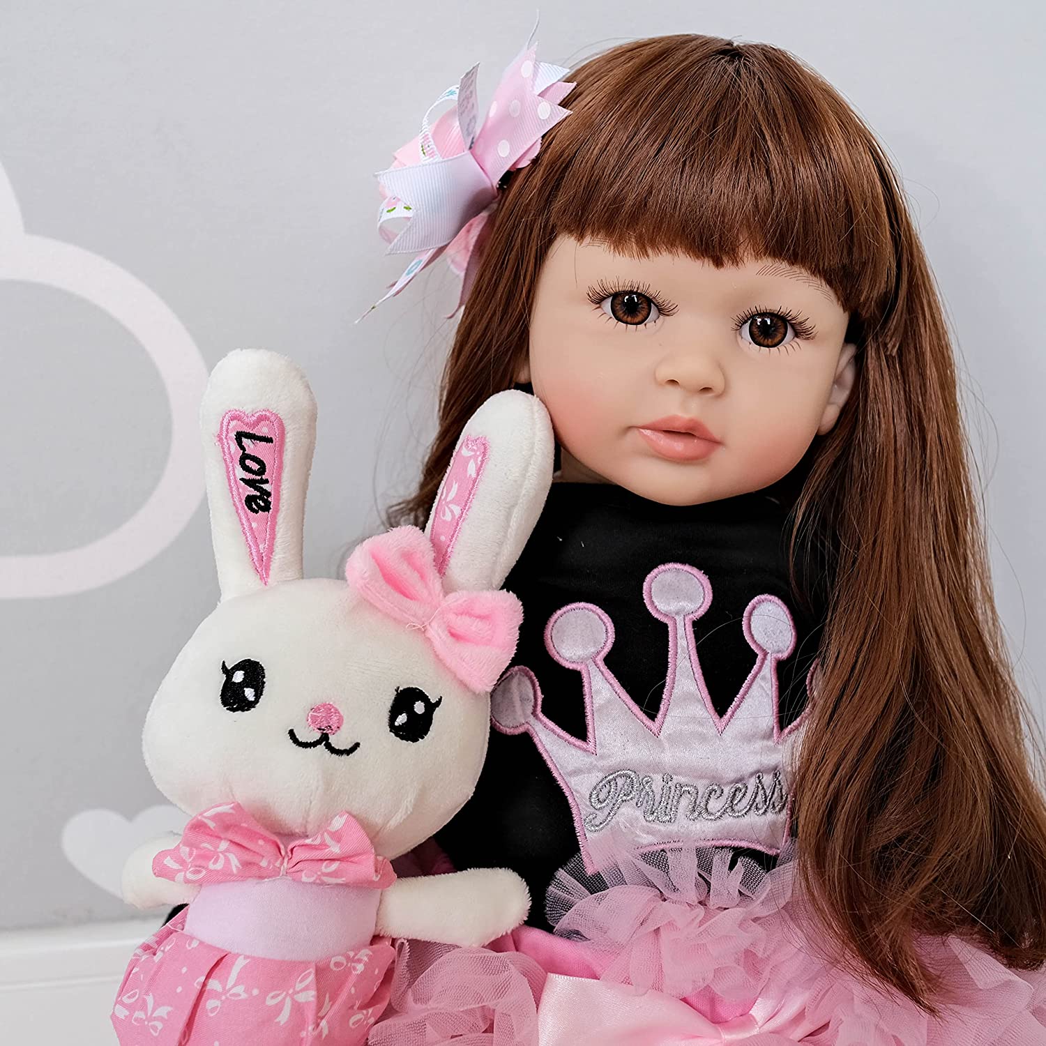 Anano Reborn Baby Dolls 24 inches Realistic Toddler Girl Dolls. (Pink Crown)