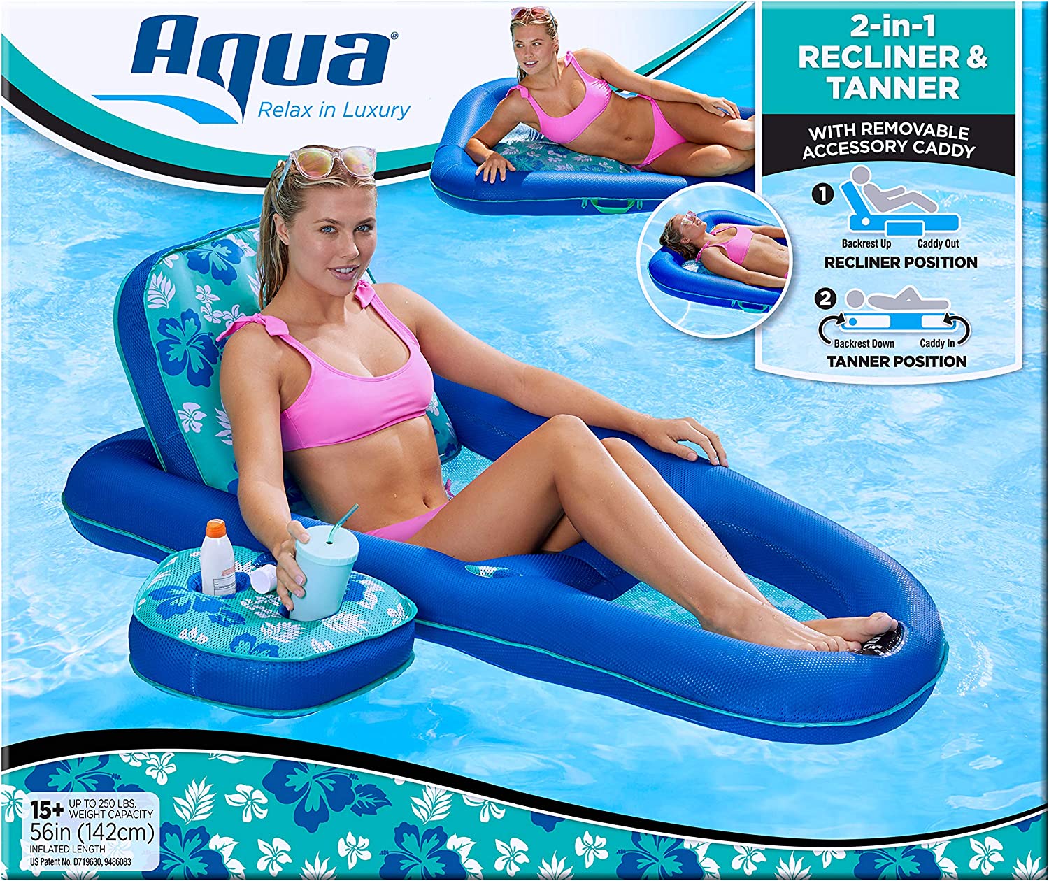 Aqua Luxury Water Lounge. X-Large. Inflatable Pool Float with Headrest. Backrest & Footrest. Palm Beach Flamingo