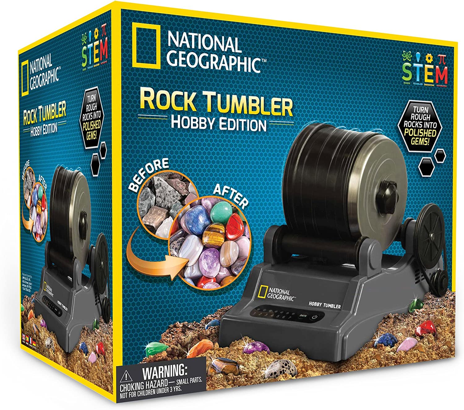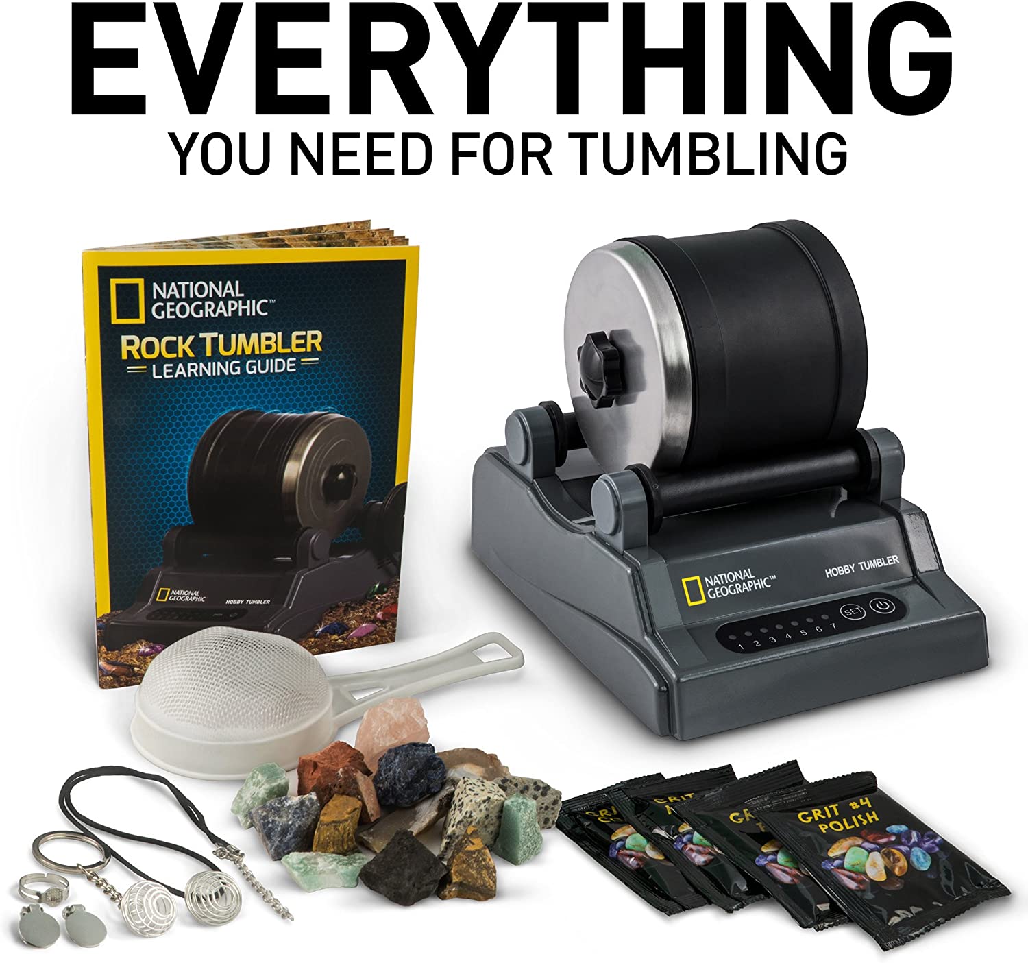 NATIONAL GEOGRAPHIC Hobby Rock Tumbler Kit - Includes Rough Gemstones. 4 Polishing Grits. Jewelry Fastenings. Learning Guide. Great Stem Science Kit