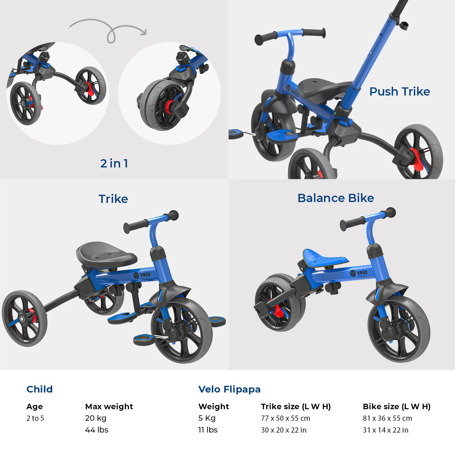 Yvolution Y Velo Flippa 4-in-1 Toddler Trike to Balance Bike - Blue