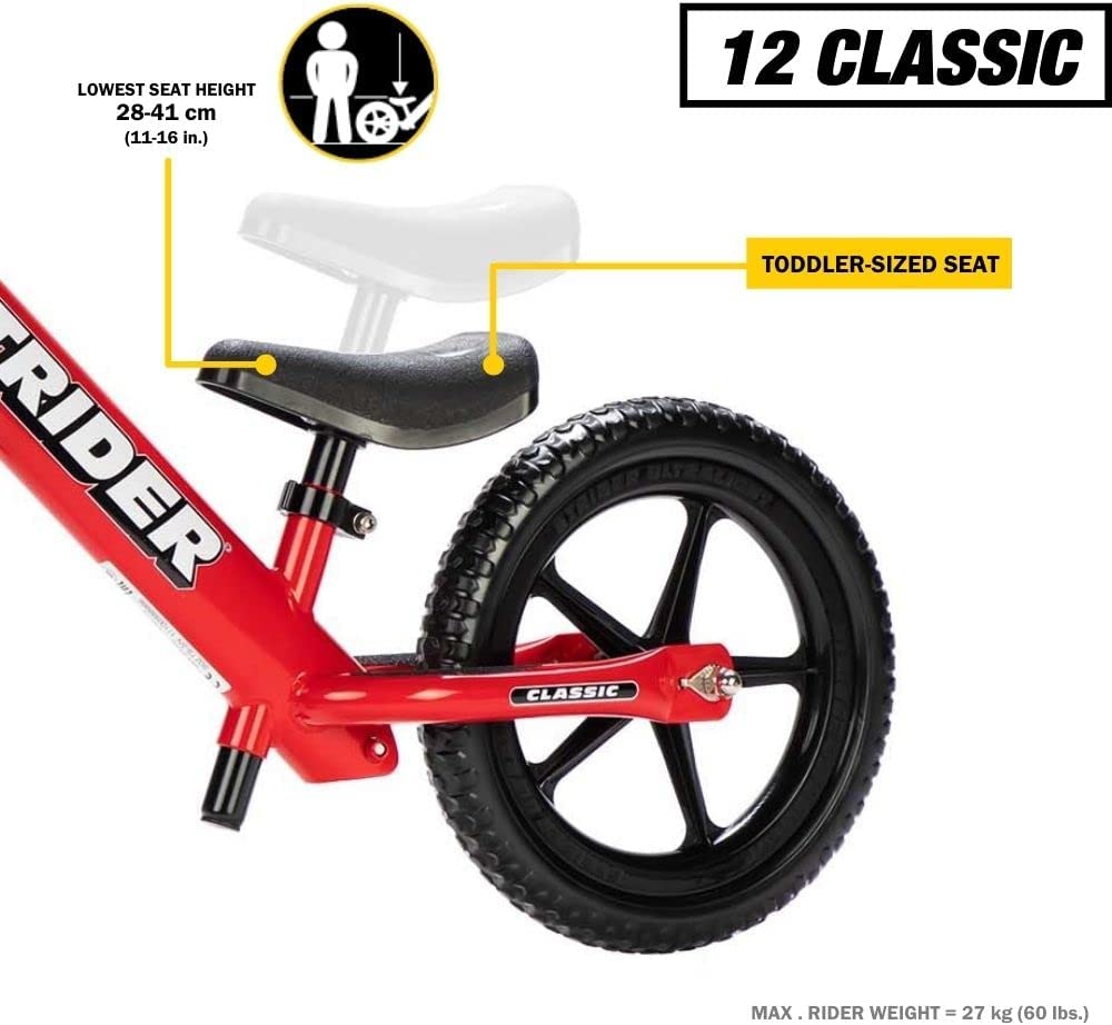 Strider - 12 Sport Kids Balance Bike. No Pedal Training Bicycle. Lightweight Frame. Flat-Free Tires. For Toddlers and Children Ages 18 Months to 5 Years Old (Red)