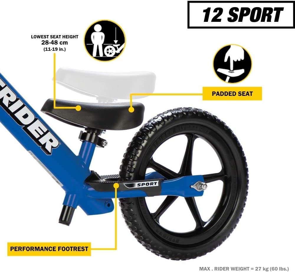 Strider - 12 Sport Kids Balance Bike. No Pedal Training Bicycle. Lightweight Frame. Flat-Free Tires. For Toddlers and Children Ages 18 Months to 5 Years Old (Blue)