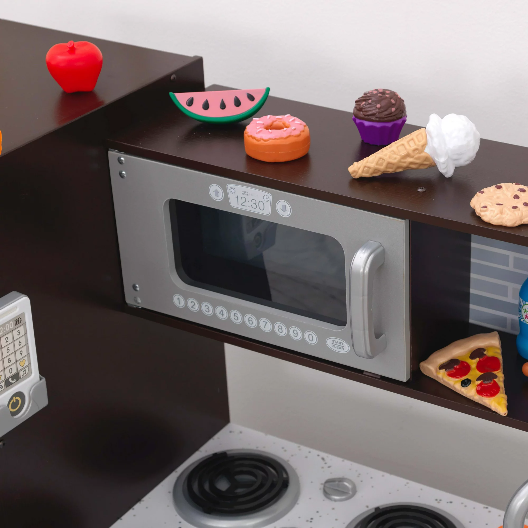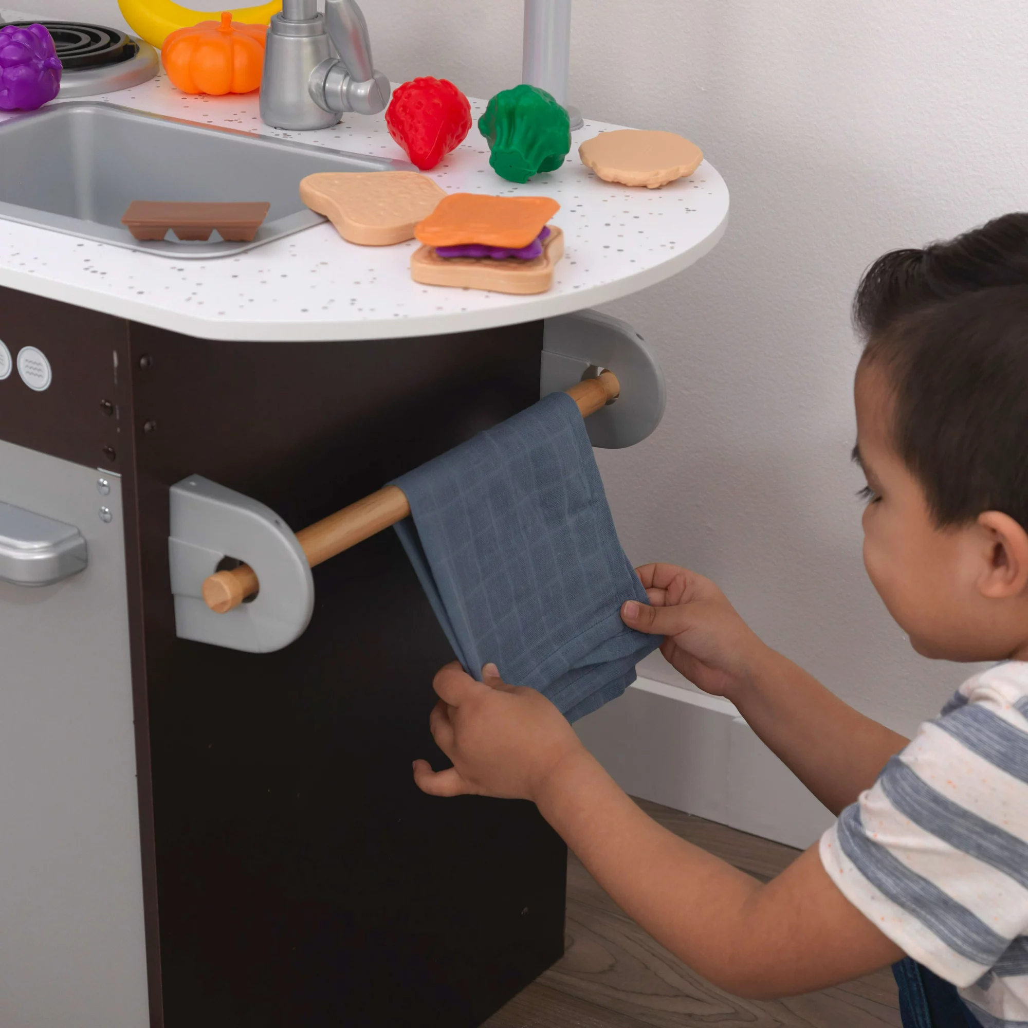 KidKraft Uptown Espresso Wooden Play Kitchen and 30-Piece Play Food Accessories