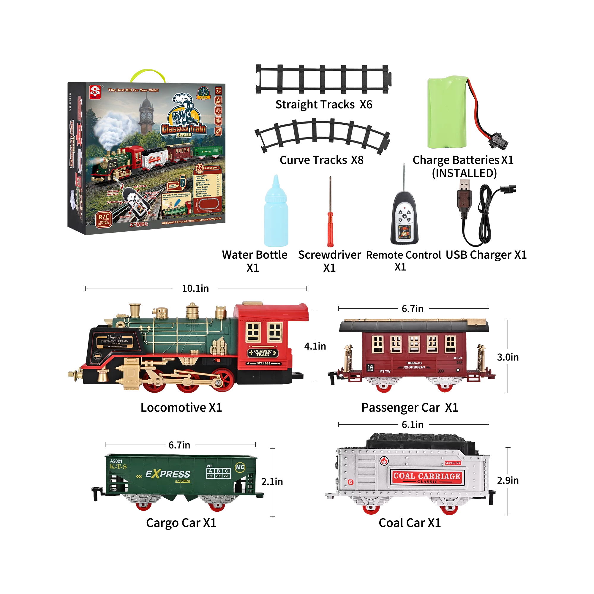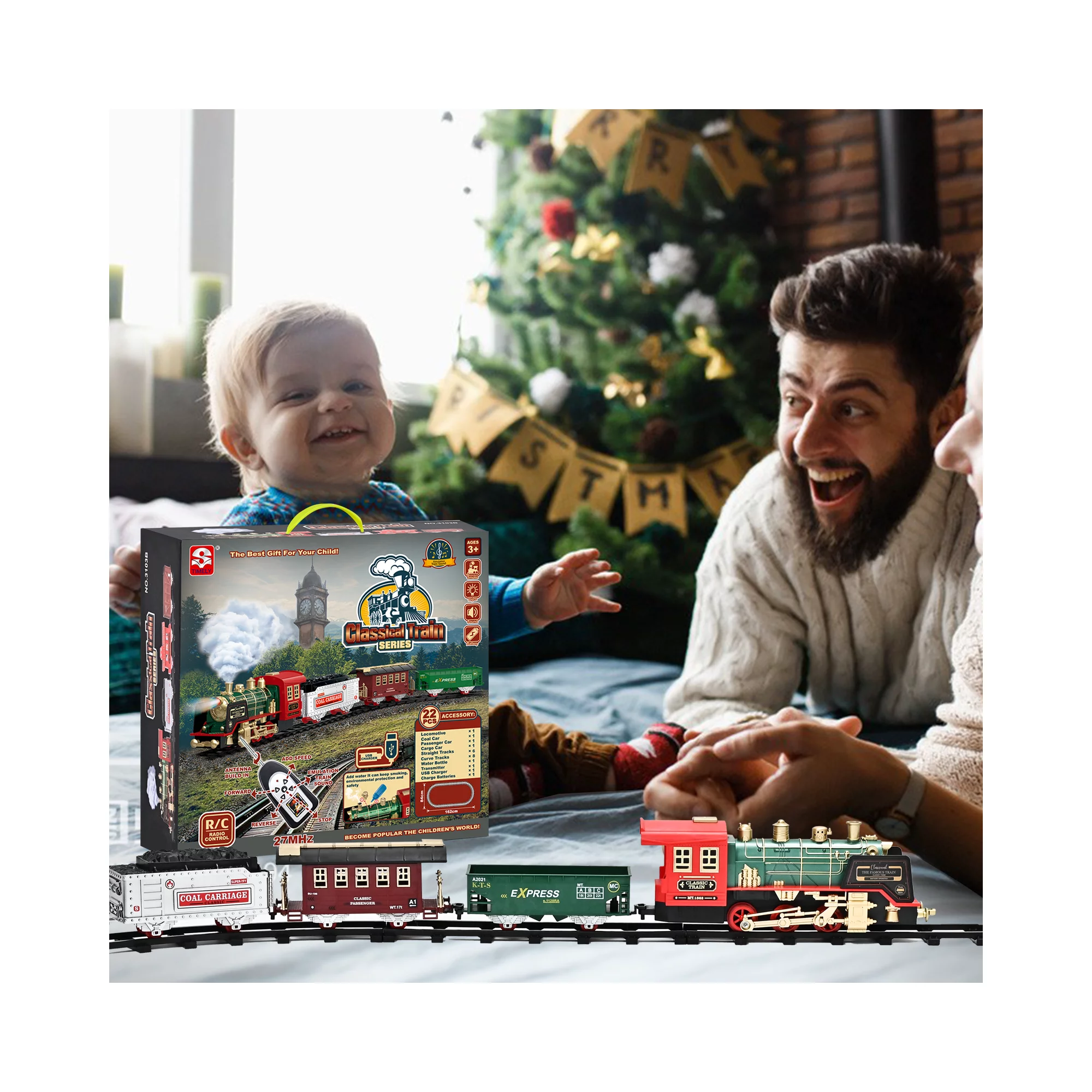 FANL Train Set Toy. RC Train Set w/ Smoke. Lights. Sounds Railway . Birthday Gift Christmas Toy for Kids Boys