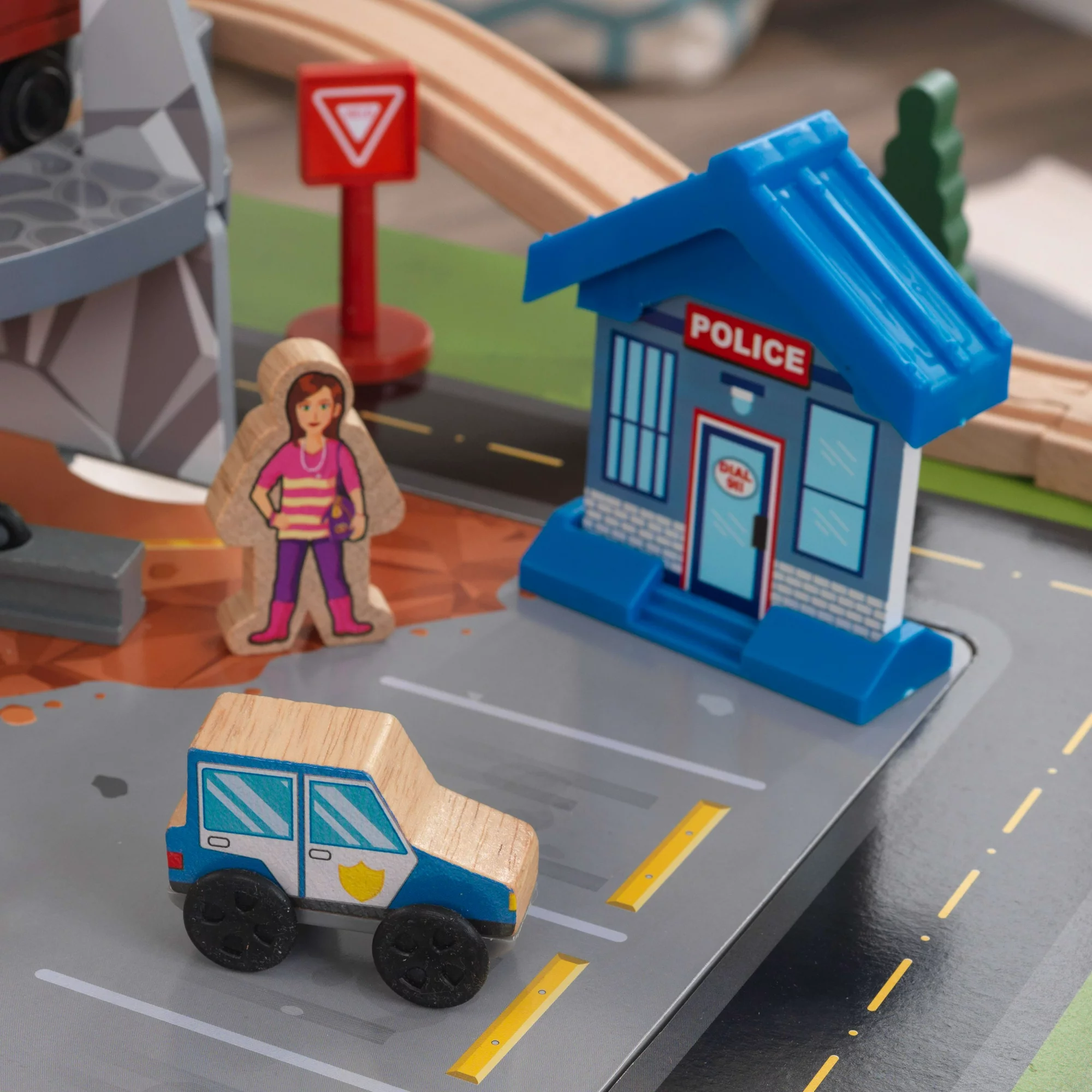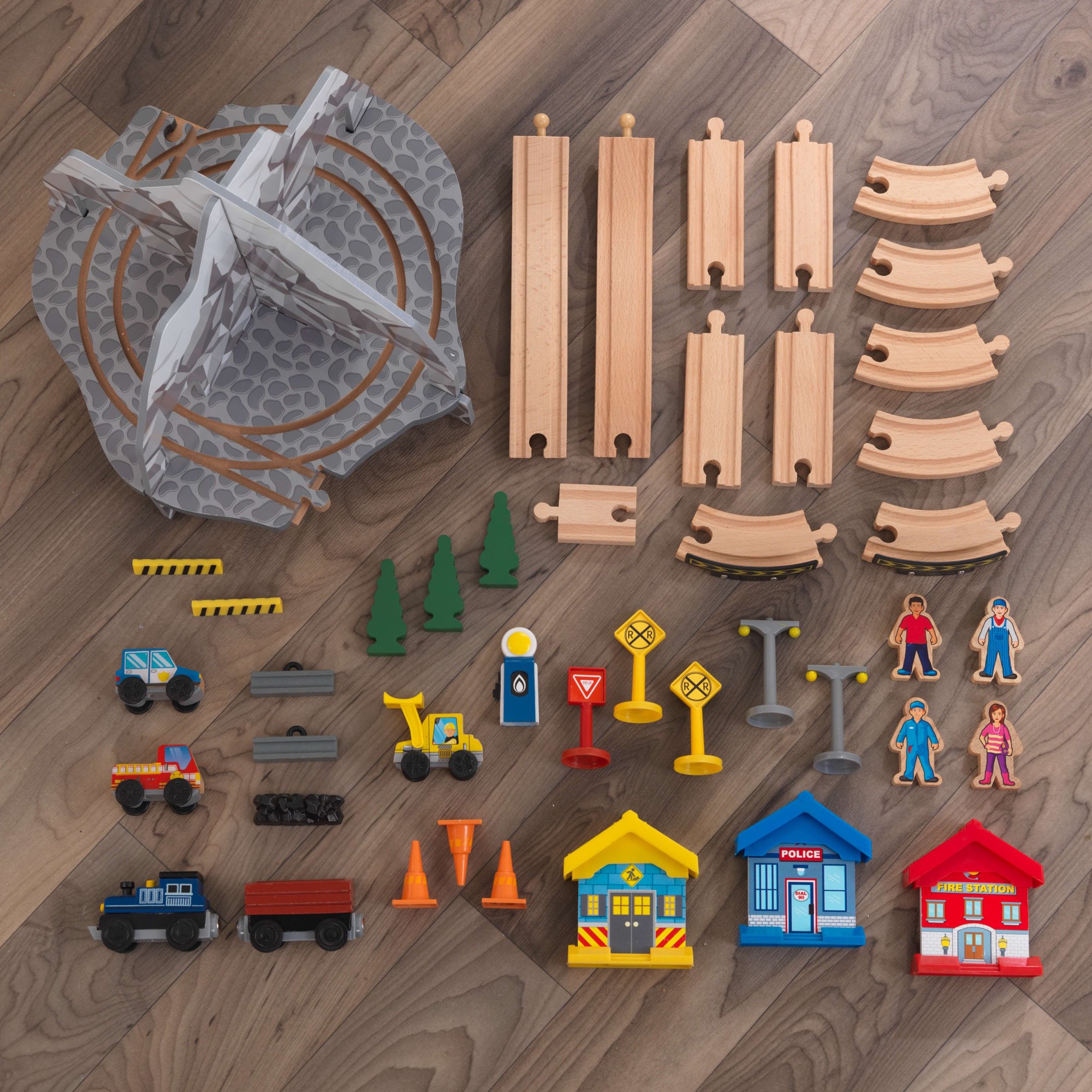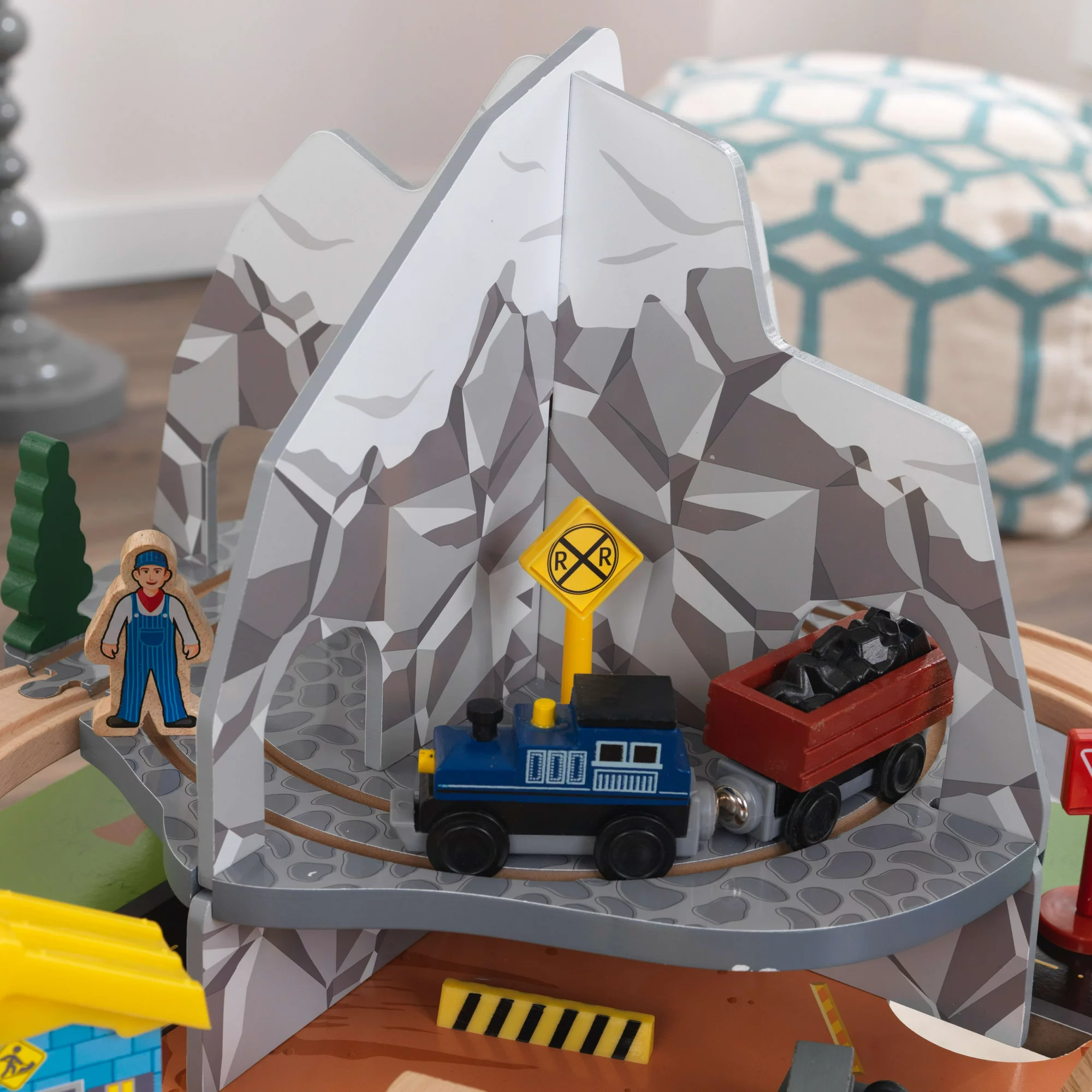 KidKraft Rocky Mountain Wooden Train Set & Table with 50 Pieces and Built-in Storage
