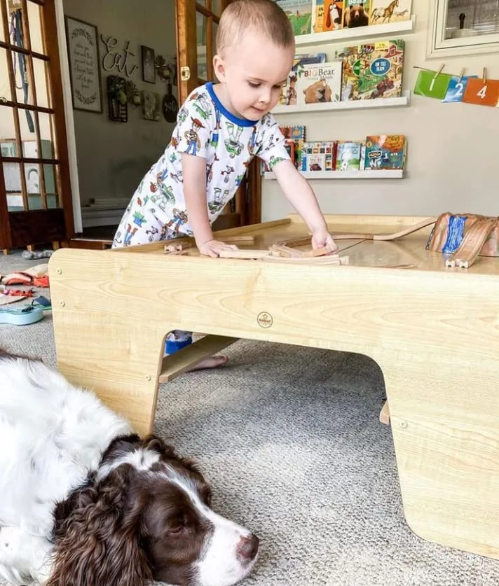 KidKraft Waterfall Mountain Wooden Train Set & Table with 120 Pieces. 3 Storage Bins