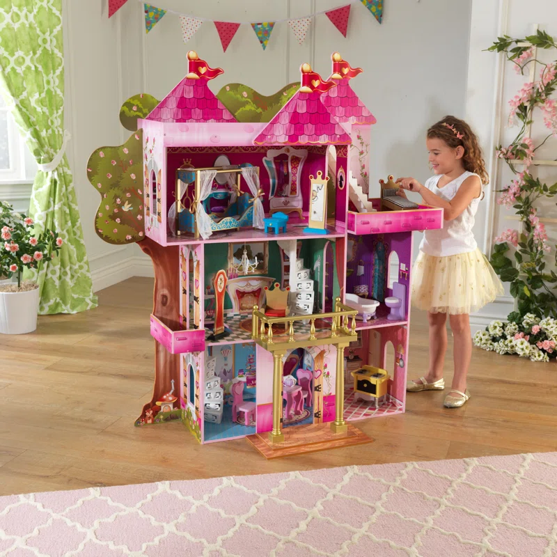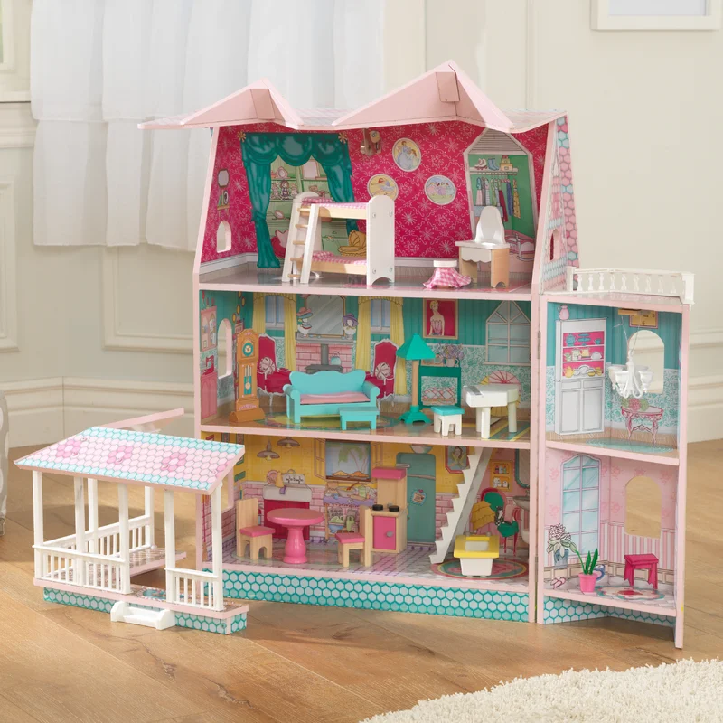 KidKraft Storybook Mansion Three-Story Wooden Dollhouse for 12-Inch Dolls with 14-Piece Accessories. Gift for Ages 3+