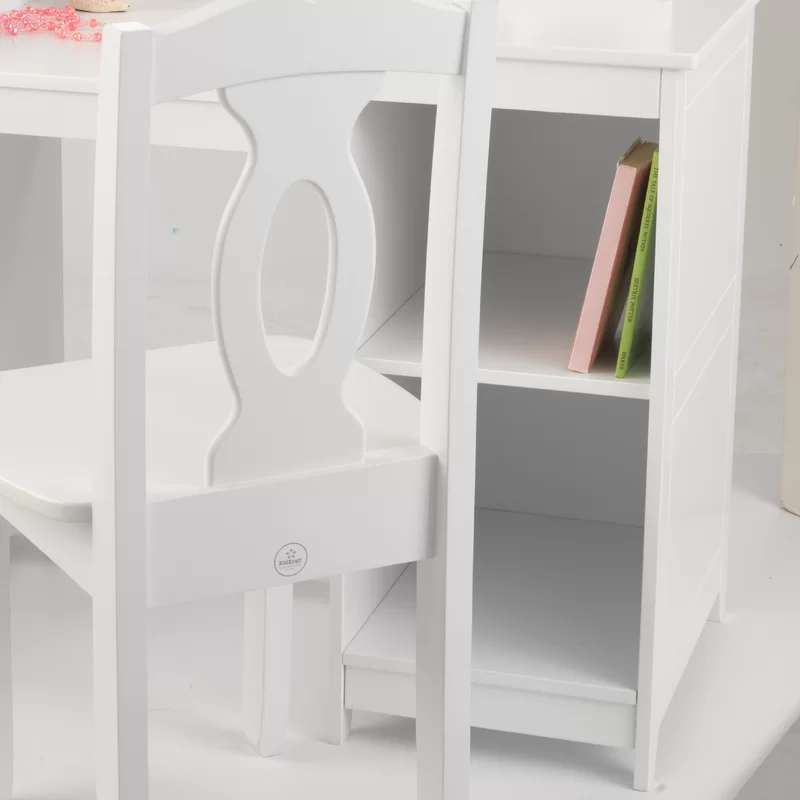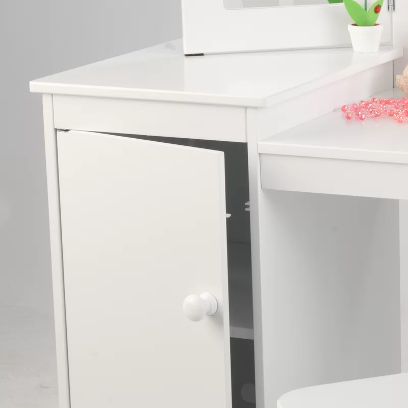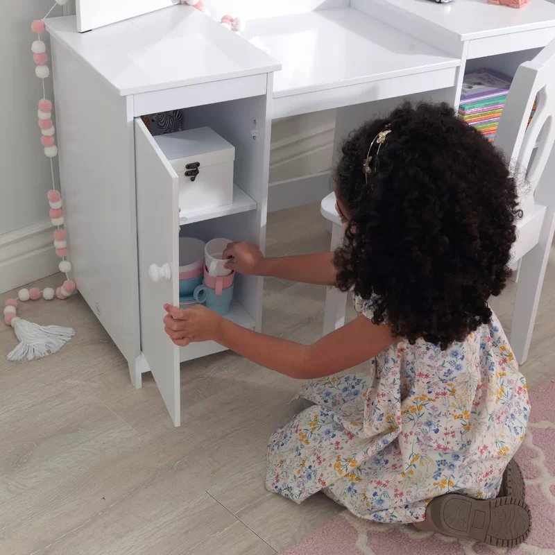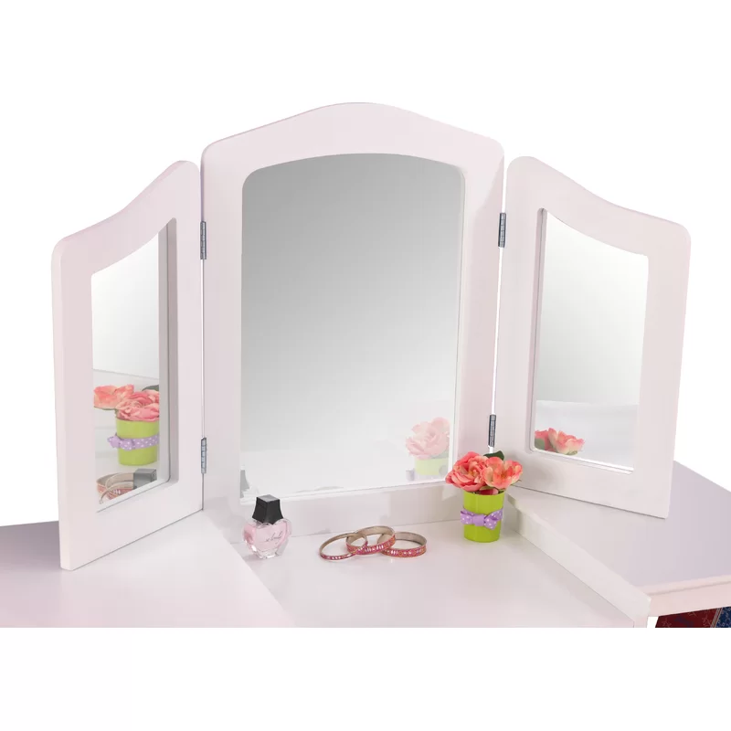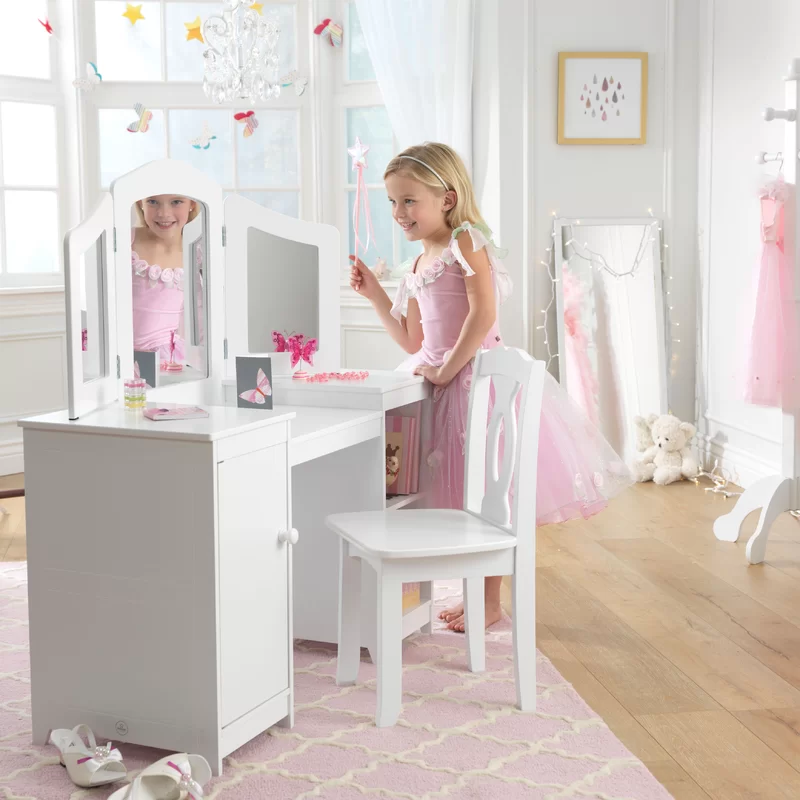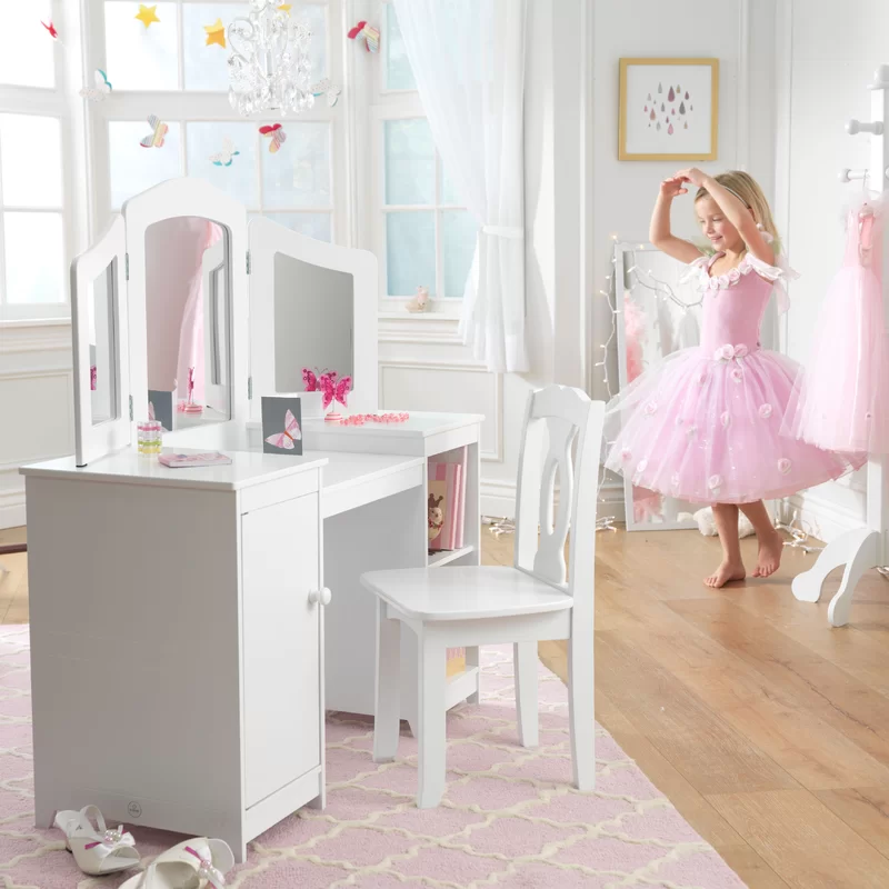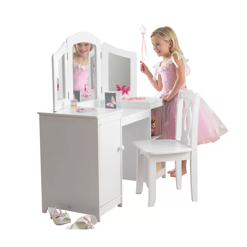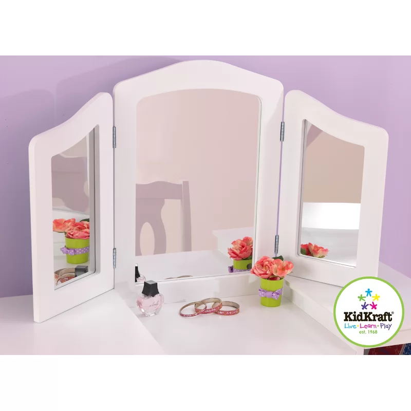 KidKraft Wooden Deluxe Vanity & Chair with Triple Mirror & Shelves. White