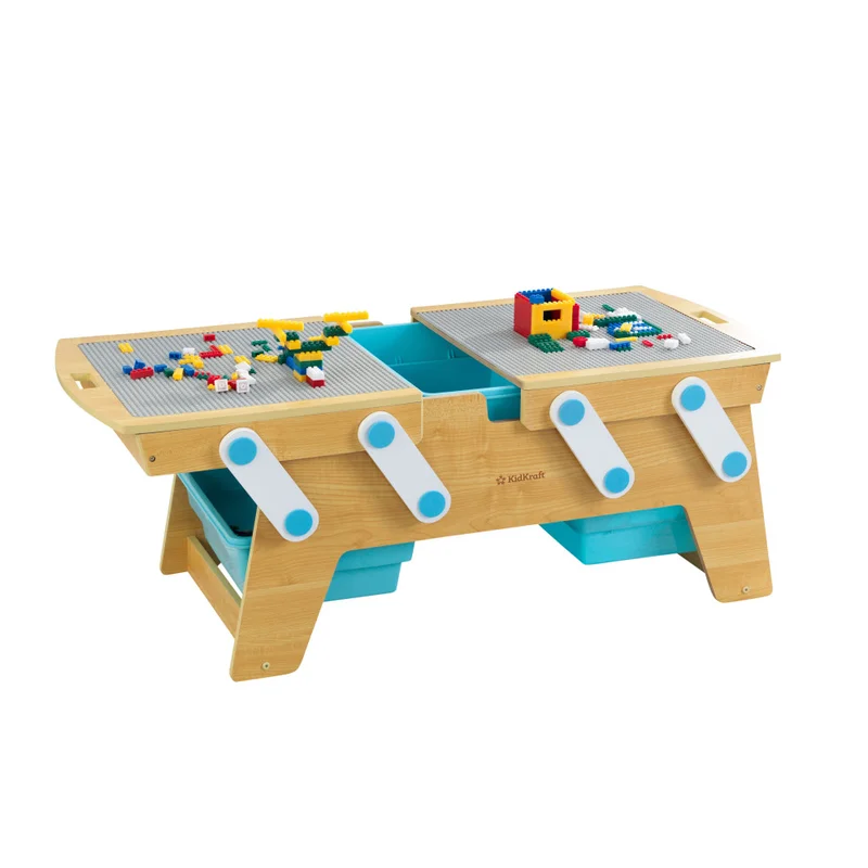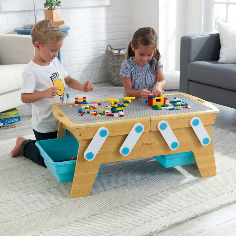 KidKraft Building Bricks Play N Store Wooden Table. Children-s Toy Storage with Bins. 200+ Blocks Included. Natural. Gift for Ages 3+