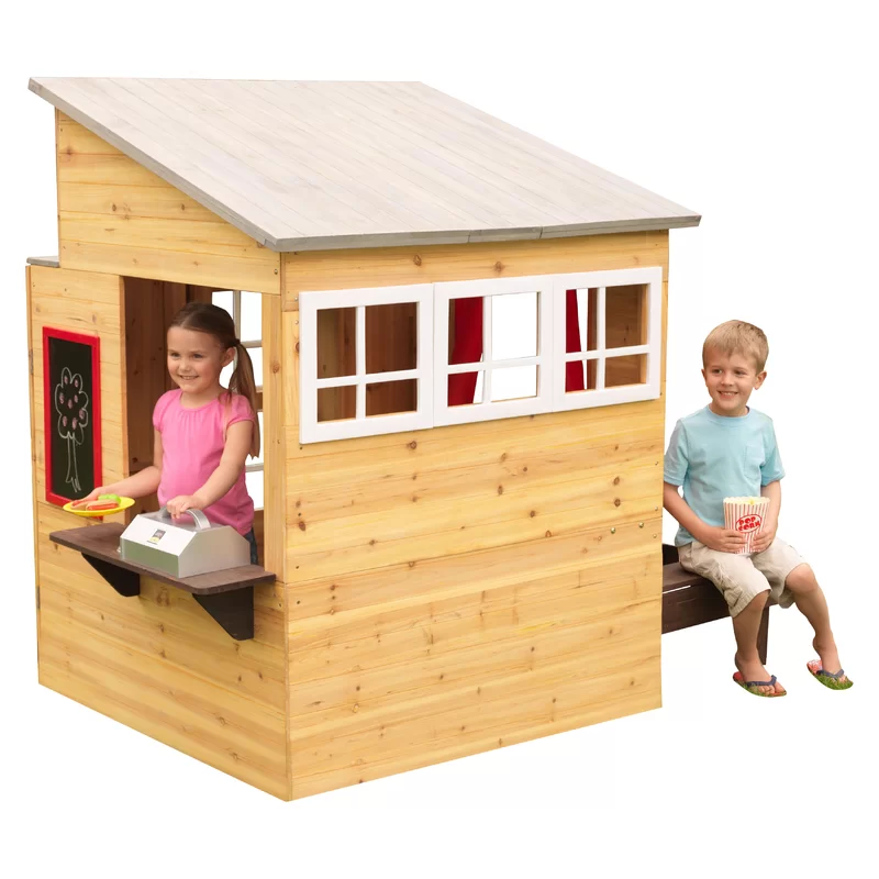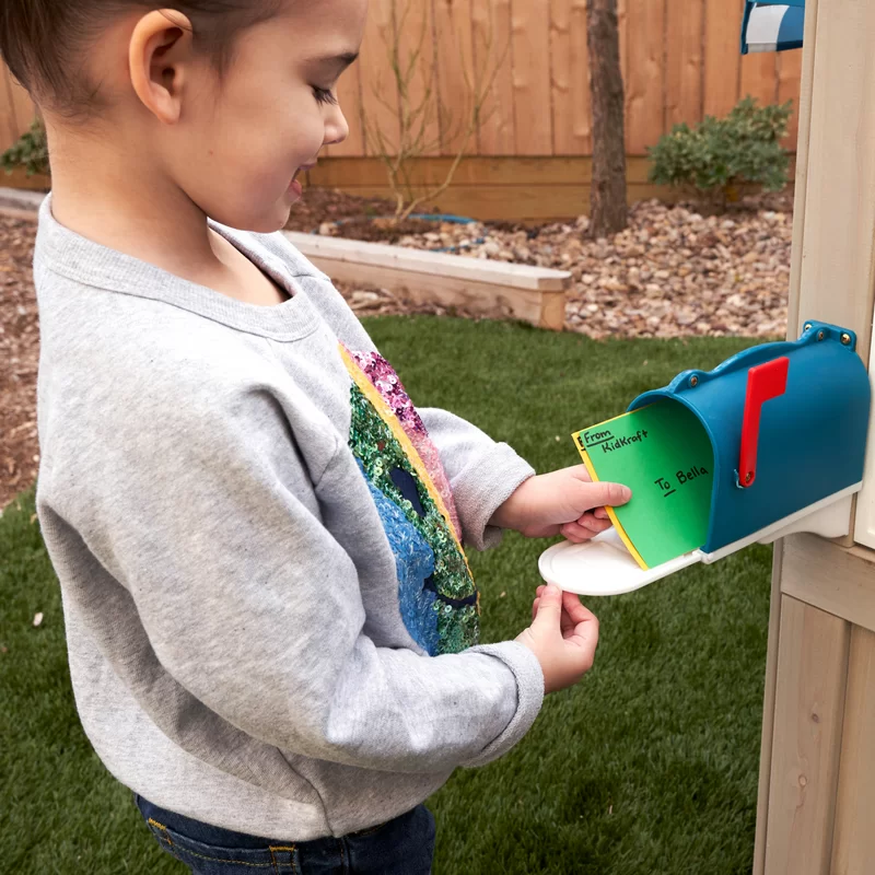 KidKraft Modern Outdoor Wooden Playhouse with Picnic Table. Mailbox and Outdoor Grill. Gift for Ages 3+