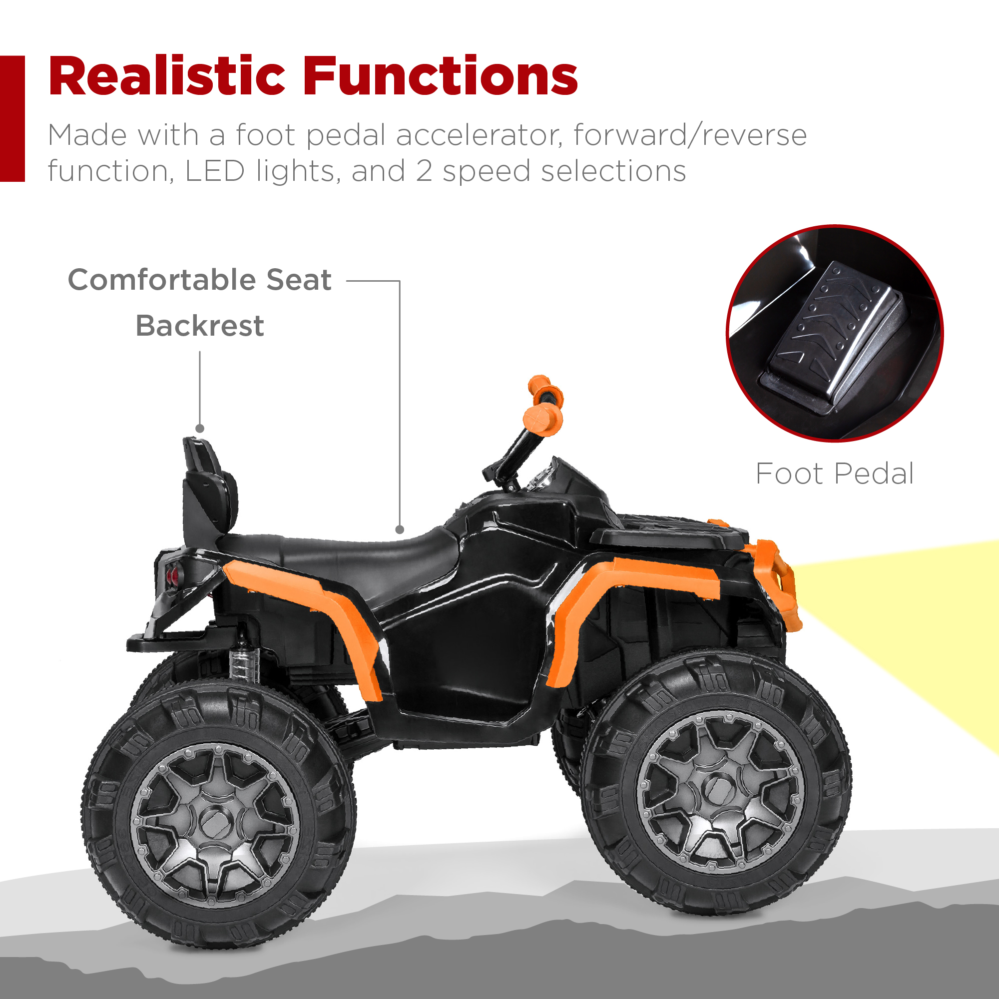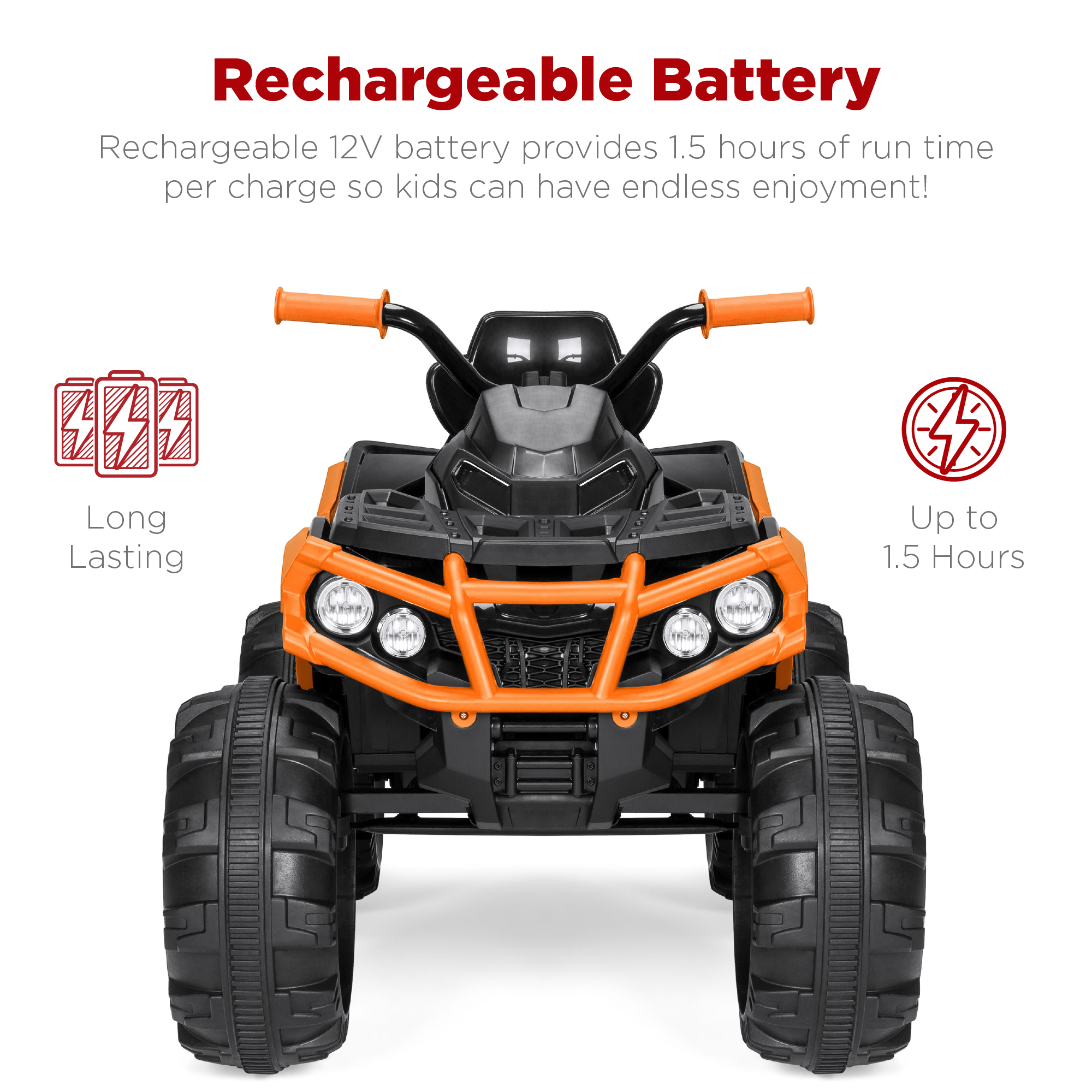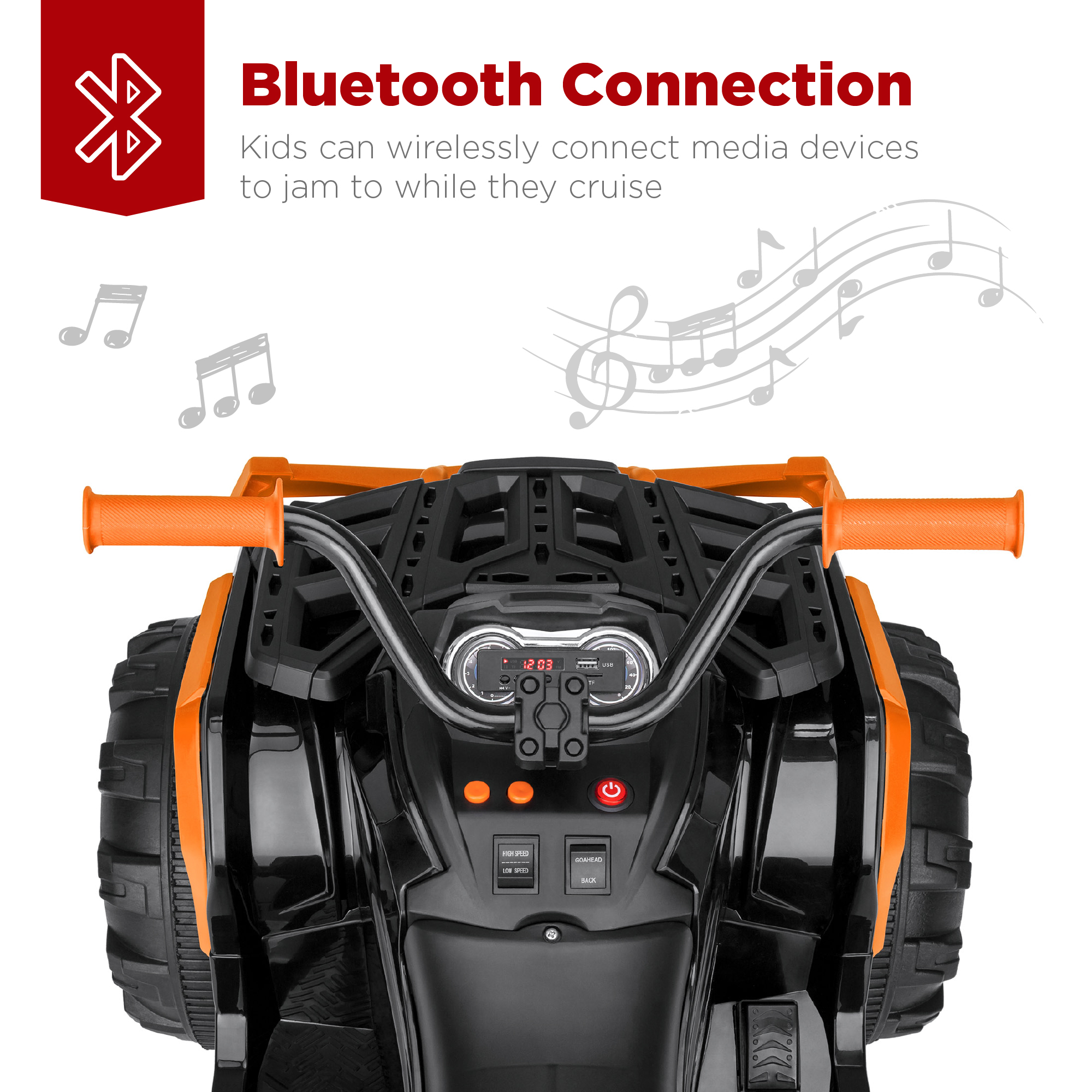 Best Choice Products 12V Kids Ride-On ATV Quad w/ Bluetooth. 3.7mph Max. Treaded Tires. LED Lights. Radio - Orange