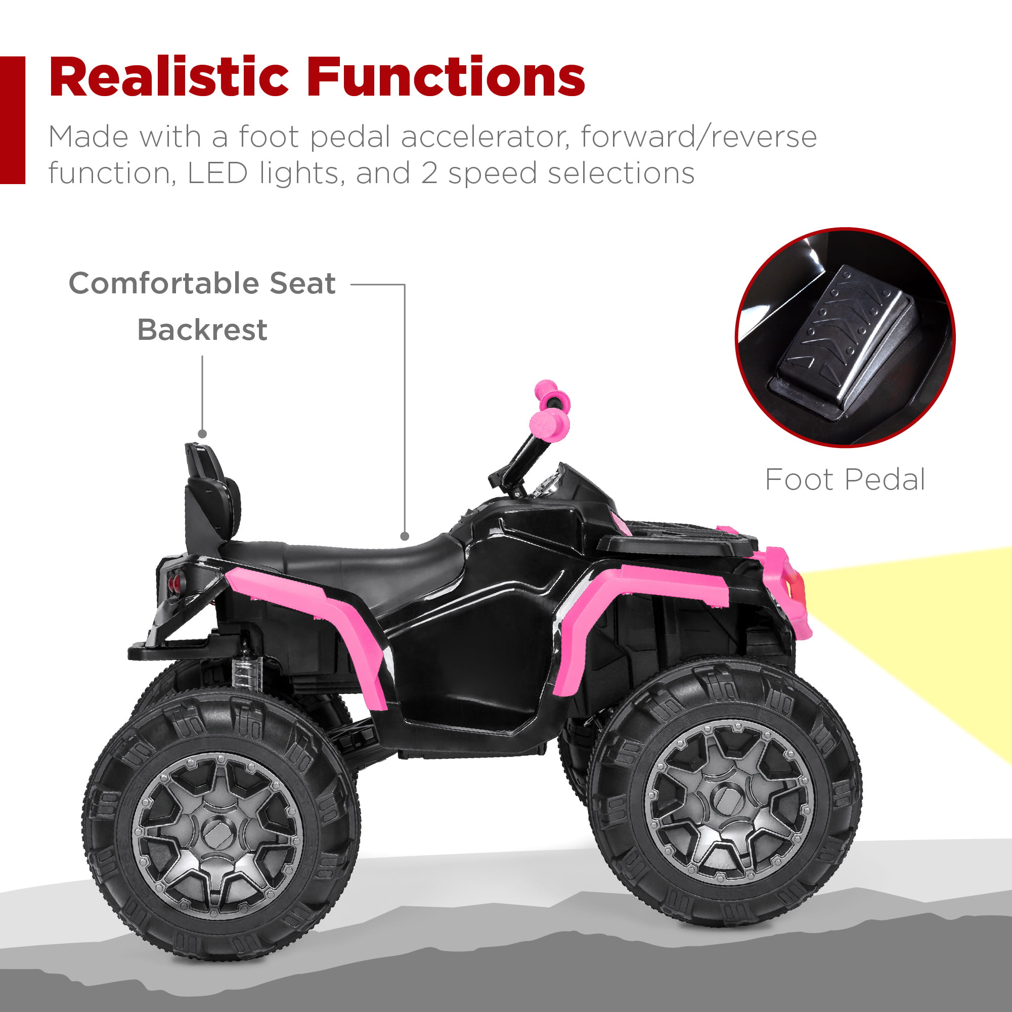 Best Choice Products 12V Kids Ride-On ATV Quad w/ Bluetooth. 3.7mph Max. Treaded Tires. LED Lights. Radio - Pink