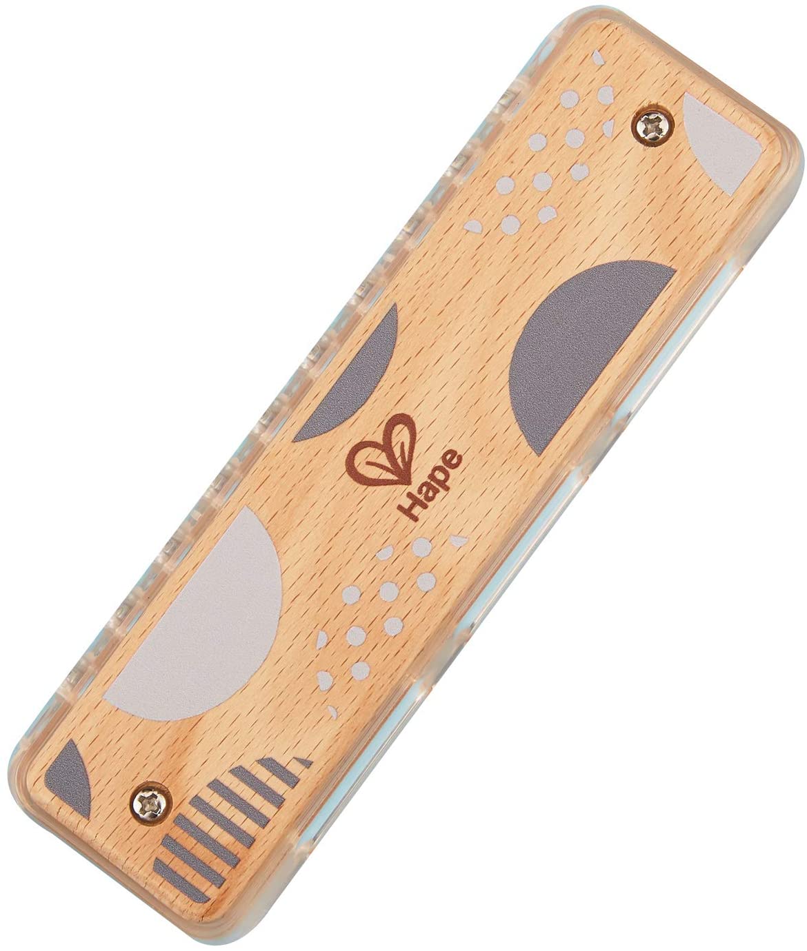 Hape Blues Harmonica. 10 Hole Wooden Musical Instrument Toy. Orange