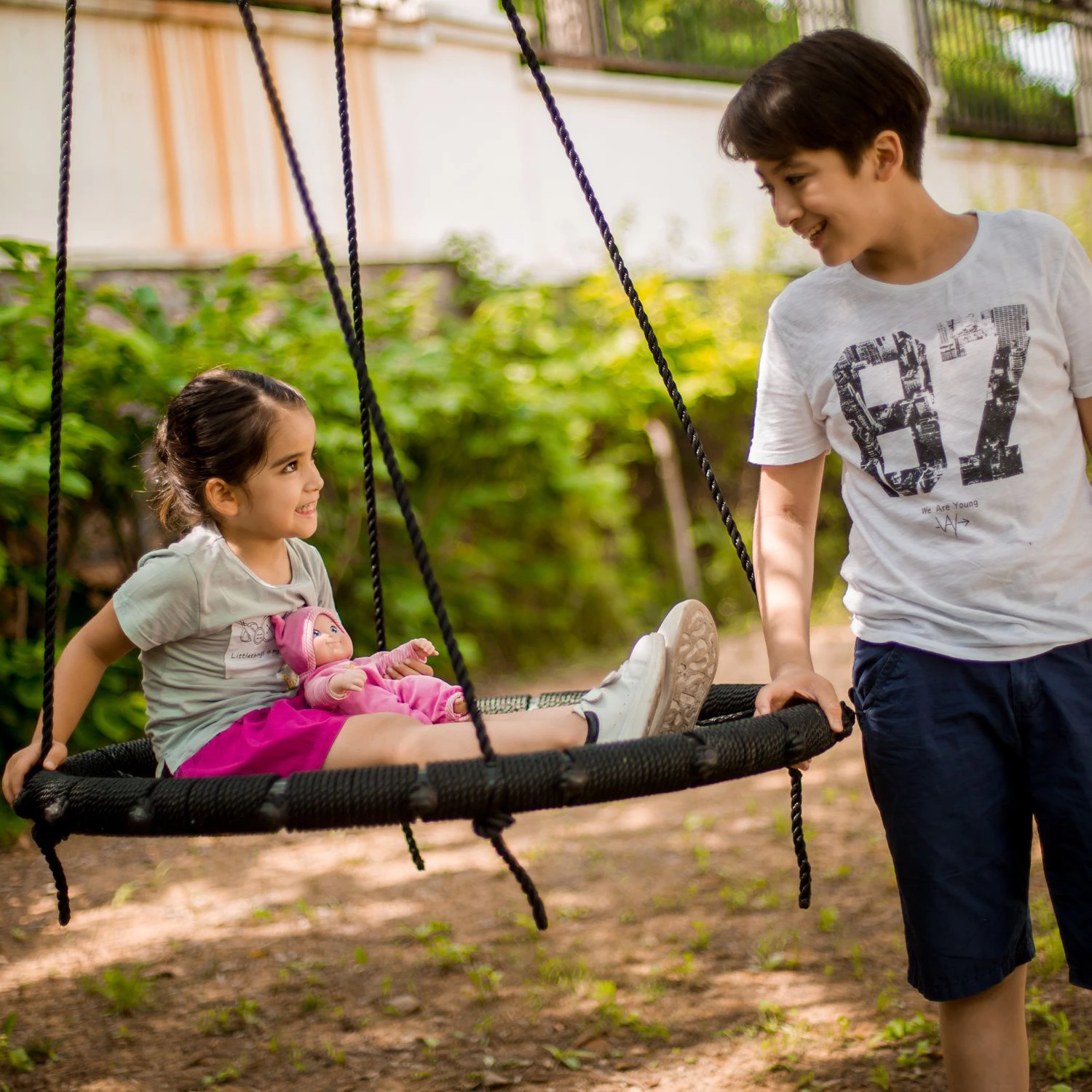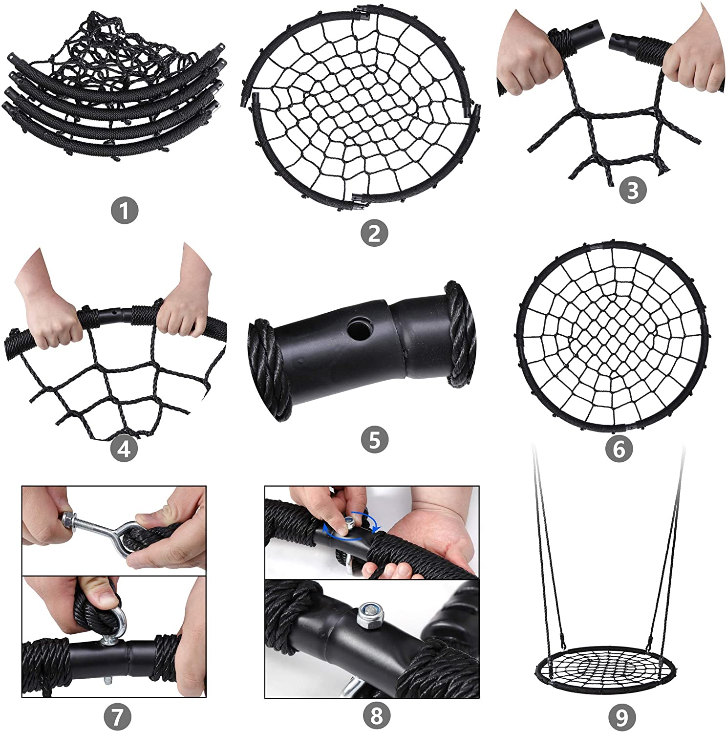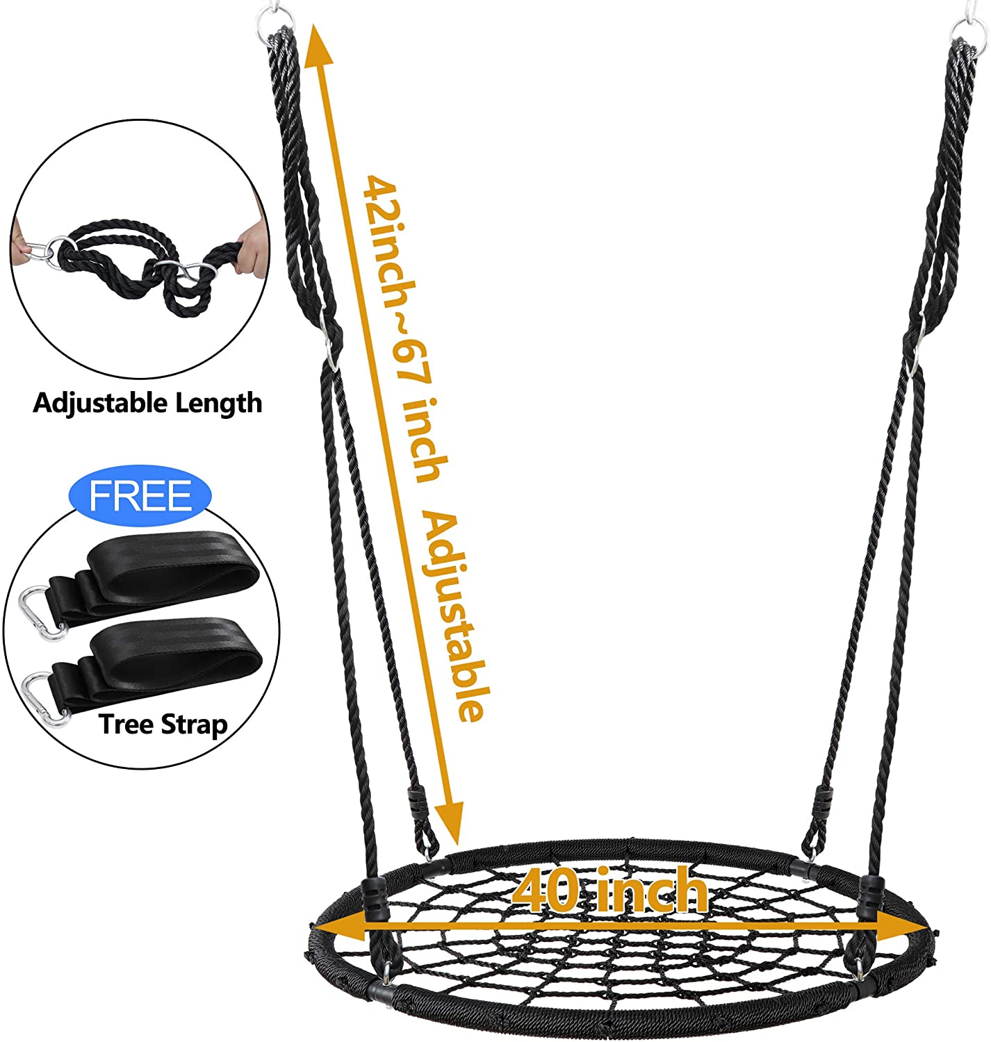 SUPER DEAL 40” Spider Web Tree Swing Net Swing Platform Rope Swing 71″ Detachable Nylon Rope Swivel. Max 660 Lbs. Extra Safe and Durable Steel Frame. Fun for Kids