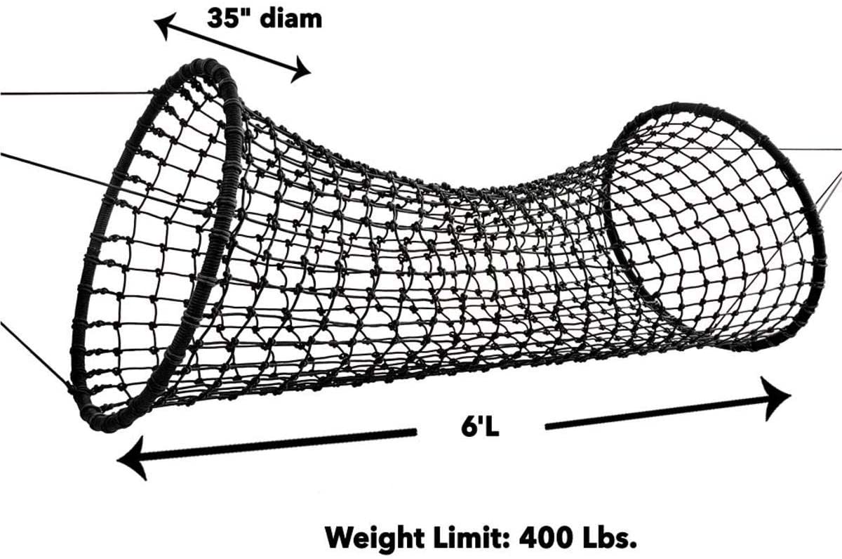 HearthSong 6-Foot Weather-Resistant Hanging Woven Rope Tunnel Bridge for Kids. Holds Up to 400 Lbs. Black