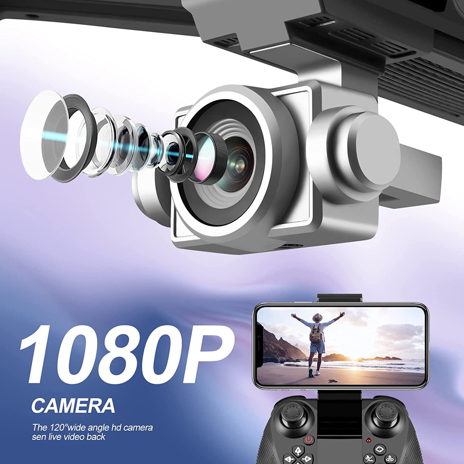 4DRC V14 Drone with 1080P HD Camera Live Video 120°Wide-Angle Wifi Altitude Hold. 3D Flip 2 Batteries Black