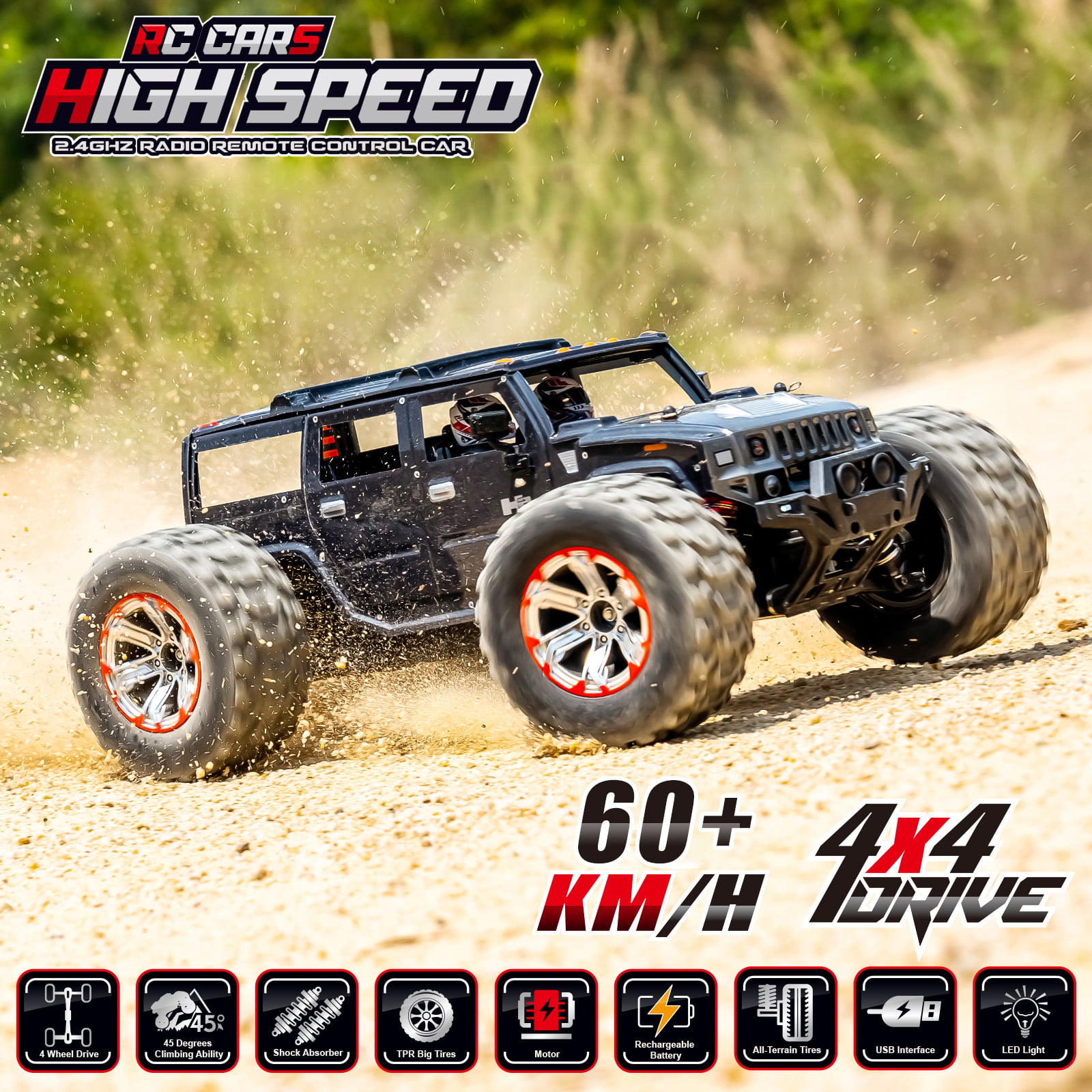 Fisca 1/10 Remote Control Hummer off Road Cars Toys for Adults. 60 Km/h High Speed. 4×4 Drive 4WD Monster Racing Drifting Trucks