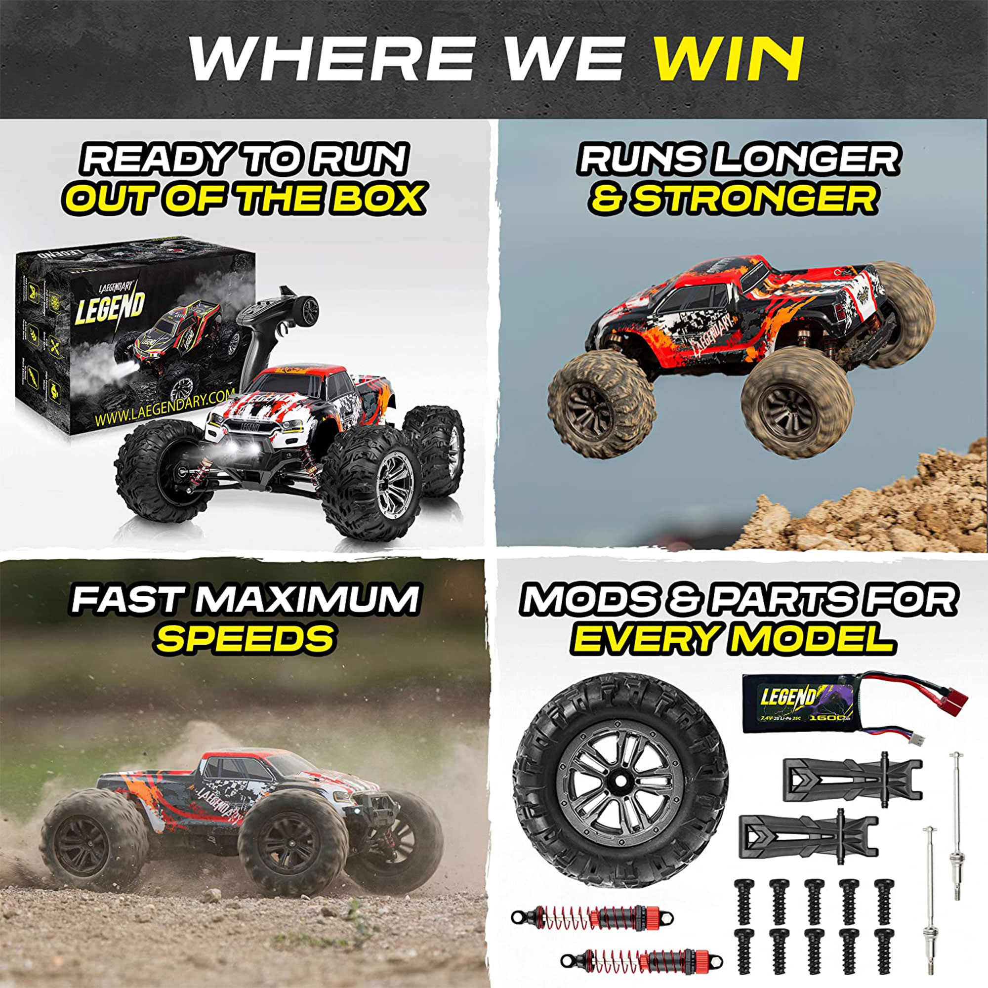 LAEGENDARY Legend 1:10 Scale RC Off-Road Car. Up to 31 MPH. Red/Yellow