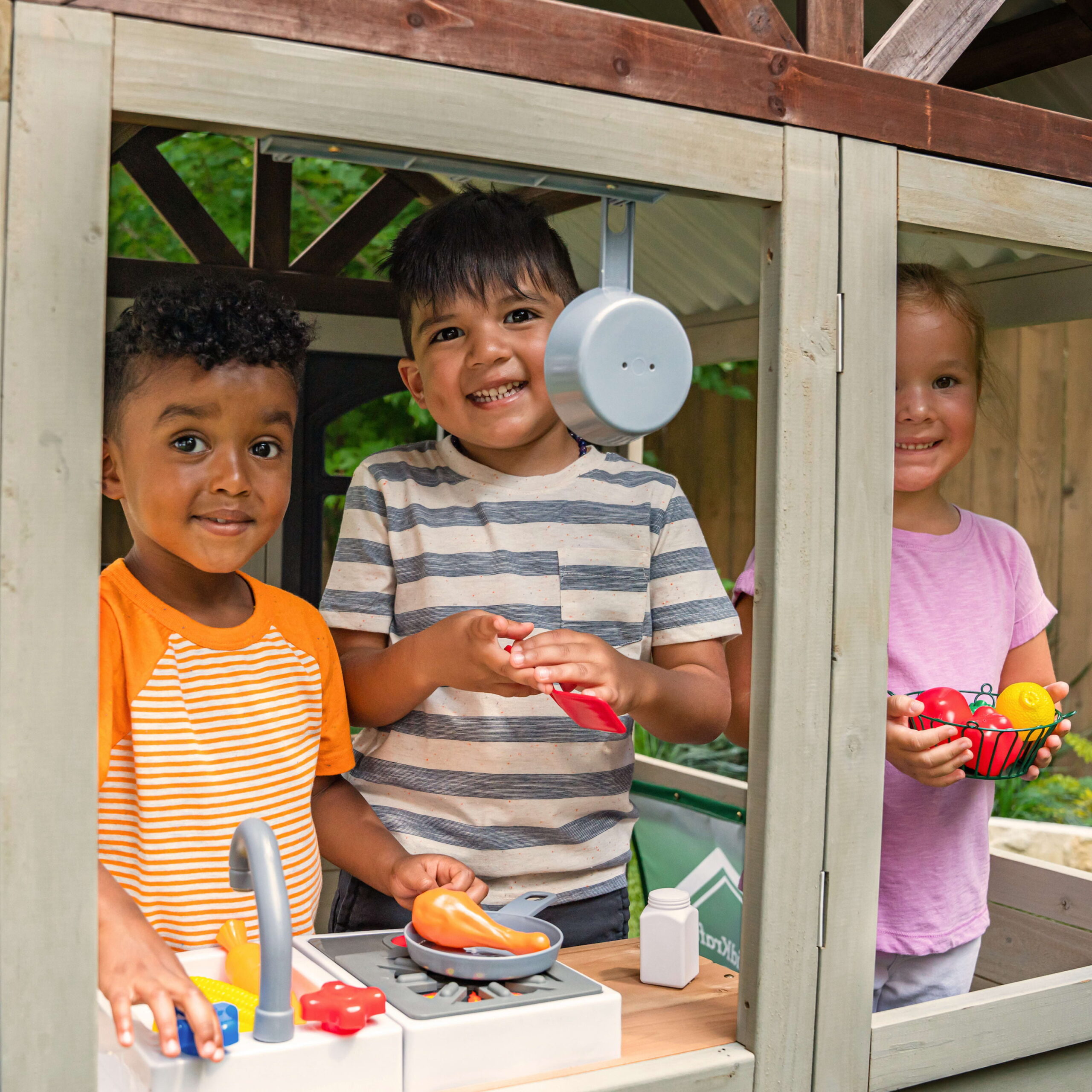 KidKraft Pioneer Cottage Wooden Outdoor Playhouse with Doorbell and 13 Pieces