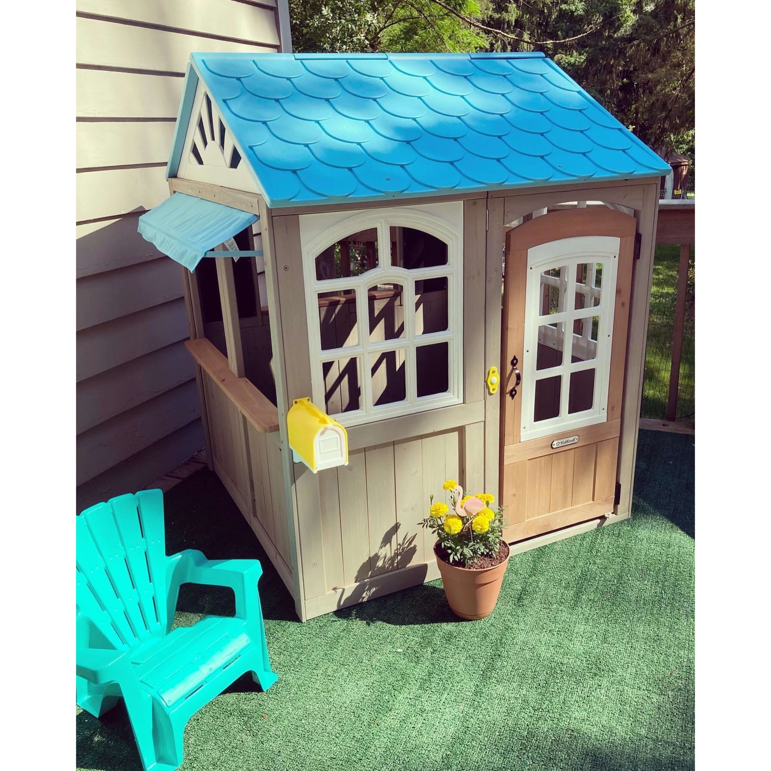 KidKraft Garden View Outdoor Wooden Playhouse with Ringing Doorbell. Mailbox & Chalkboard