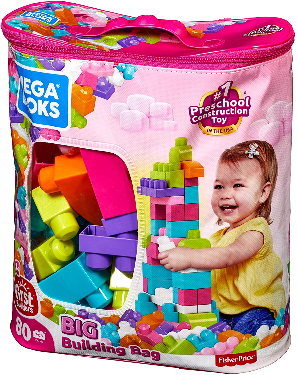 Mega Bloks First Builders Big Building Bag. Building Toys for Toddlers- Pink Bag