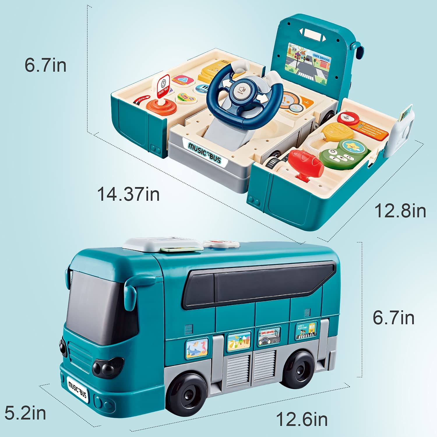 CUTE STONE Bus Car Toy. Kids Play Vehicle with Sound and Light. Steering Wheel.