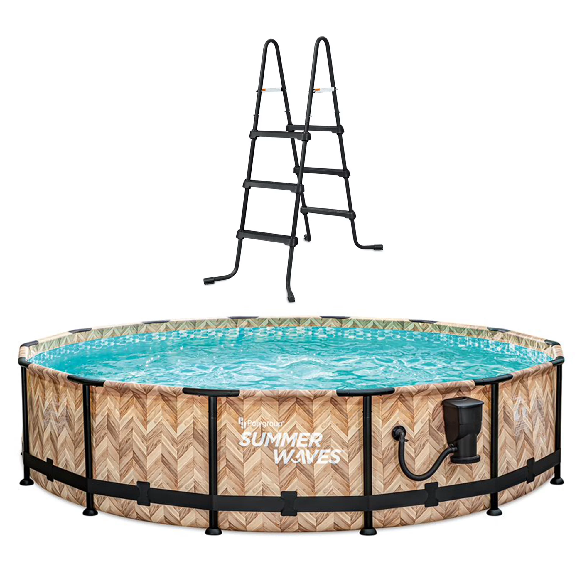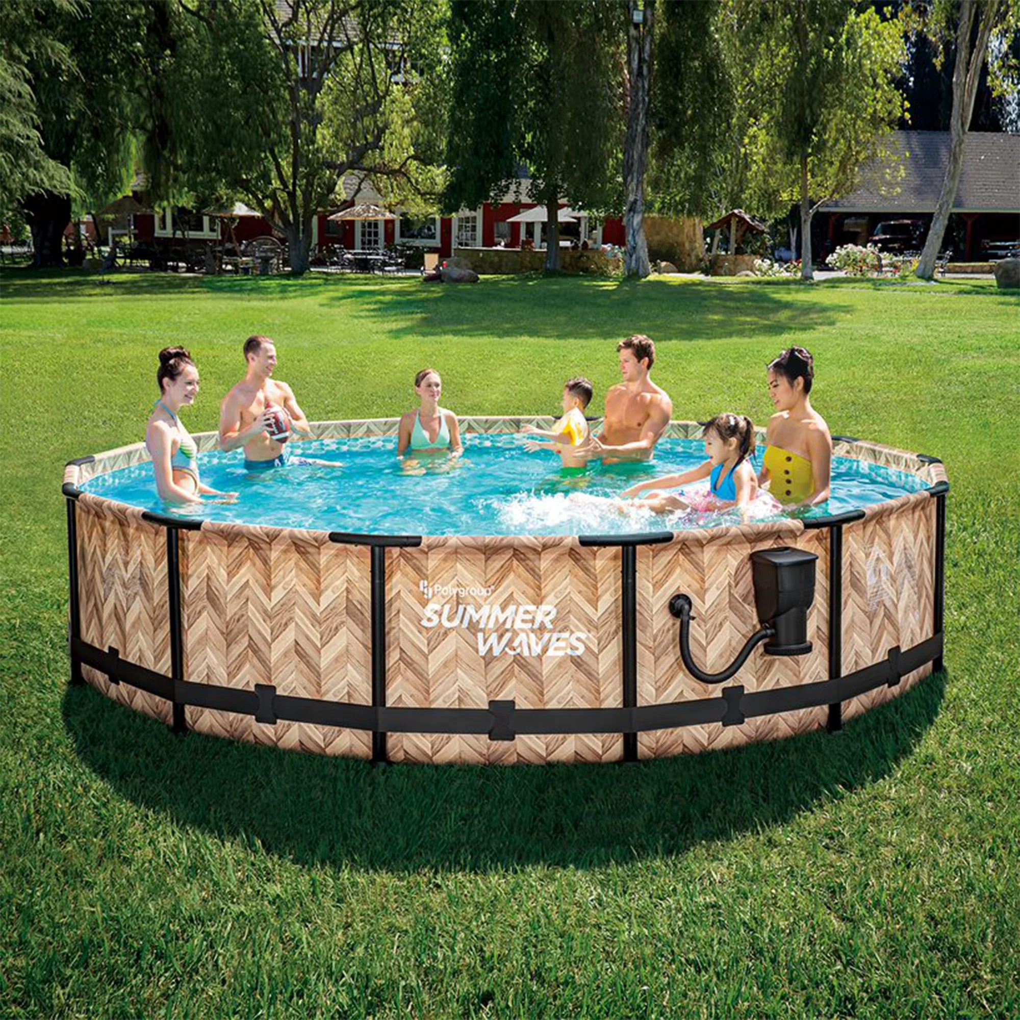 Summer Waves Natural Teak Elite 14′ x 36″ Frame Above Ground Swimming Pool