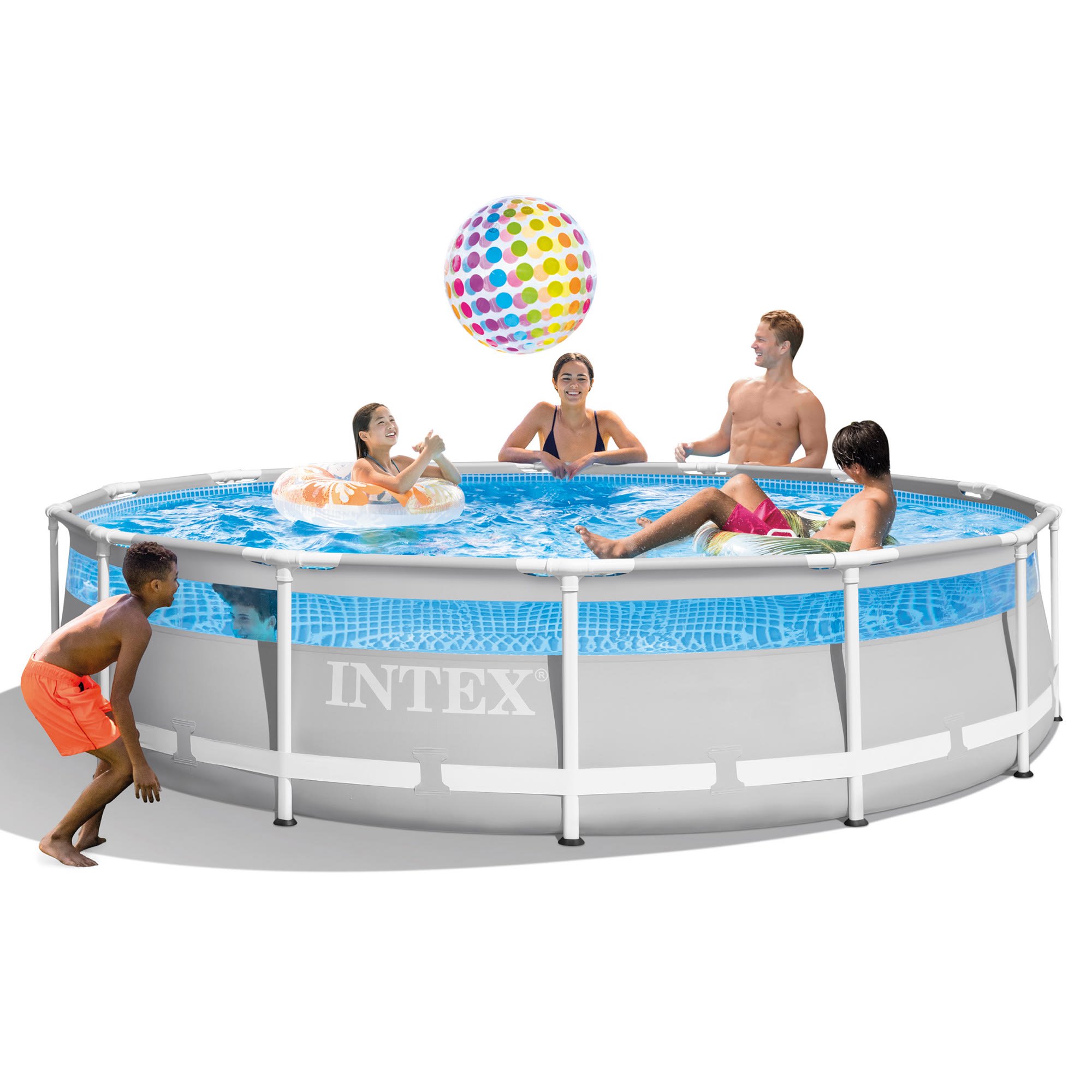 Intex 14′ x 42″ Prism Frame Clearview Premium Pool Set - Above Ground Pool Set. 3357 Gallon Capacity. Hydro Aeration Technology. Includes Filter Pump. Ground Cloth. Pool Cover & Ladder. Ages 6+