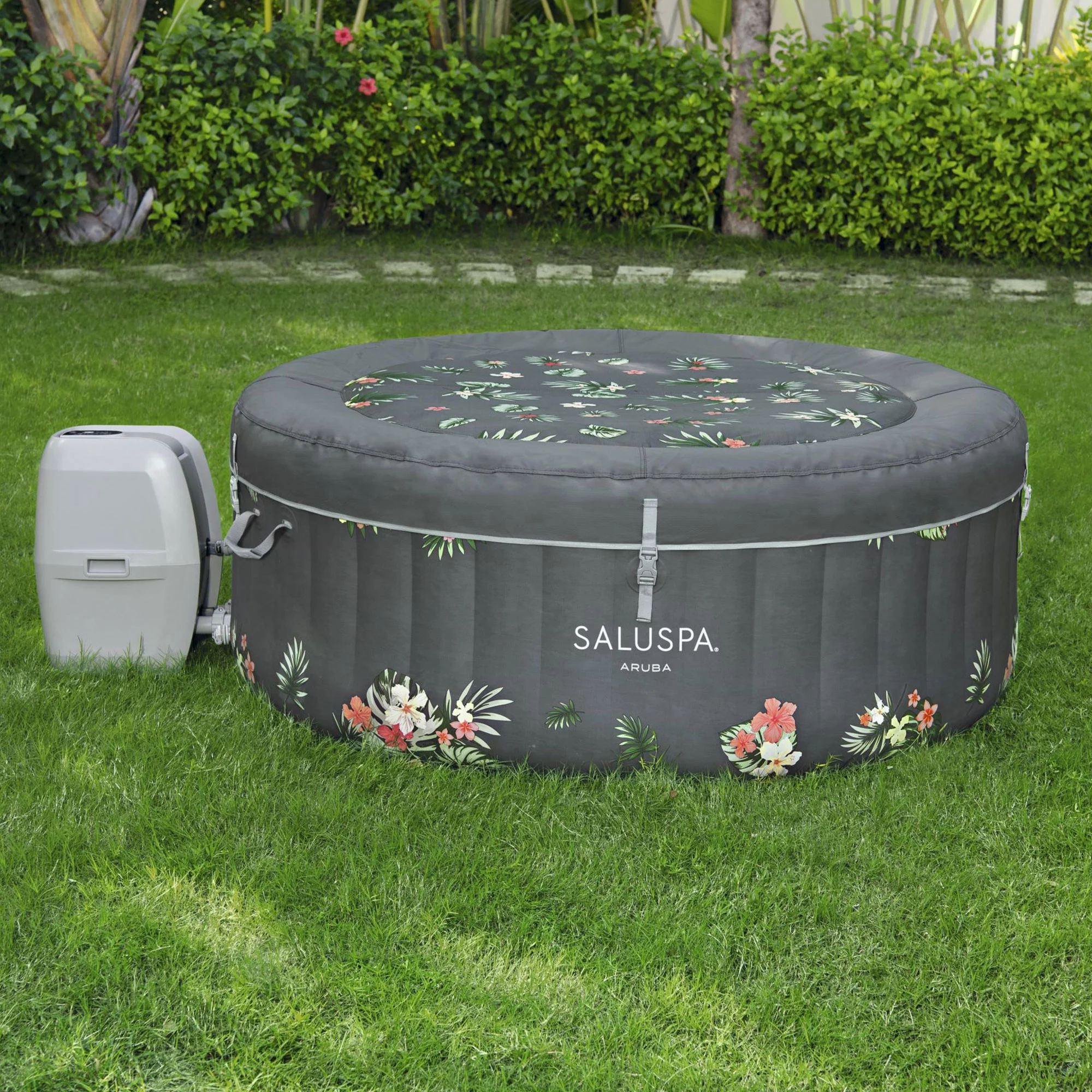 Bestway Fiji SaluSpa 2-4 Person Inflatable Hot Tub with 120 AirJets. Gray