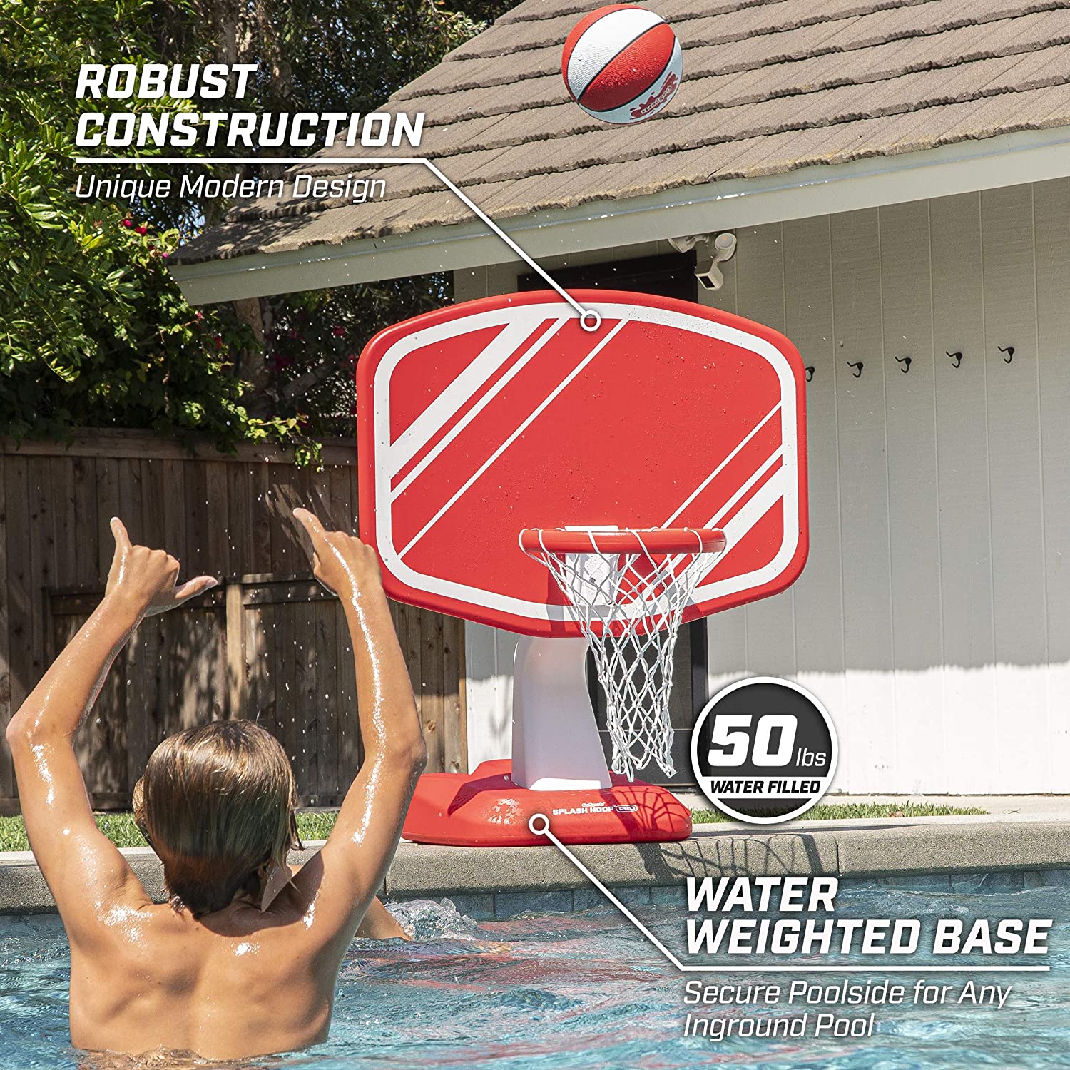 GoSports Splash Hoop Swimming Pool Basketball Game. Includes Poolside Water Basketball Hoop. 2 Balls and Pump – Red