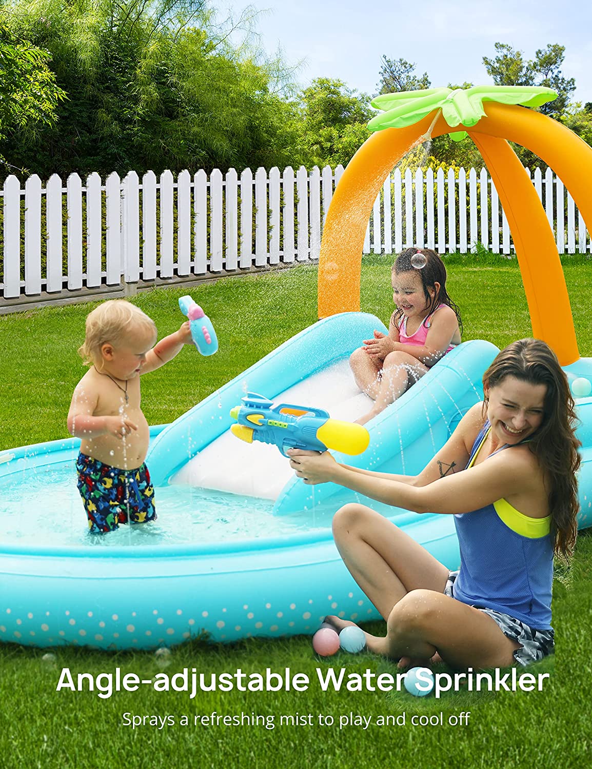 Kiddie Pool. Evajoy Inflatable Play Center Kids Pool with Slide. Water Sprayers Thickened Wear-Resistant Full-Sized Swimming Pool for Kids Toddler Children. Garden Backyard & Indoor Use 110x71x53