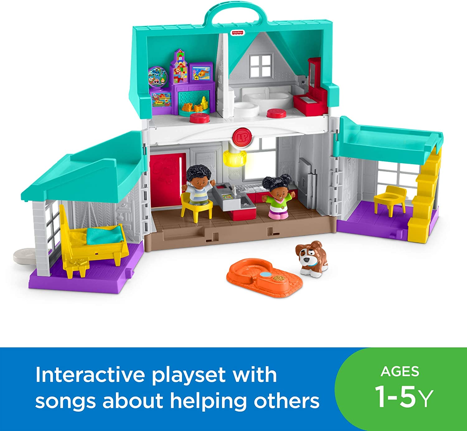 Fisher-Price Little People Toddler Playhouse Big Helpers Home Playset with Songs Phrases Figures & Accessories for Ages 1+ Years. Blue