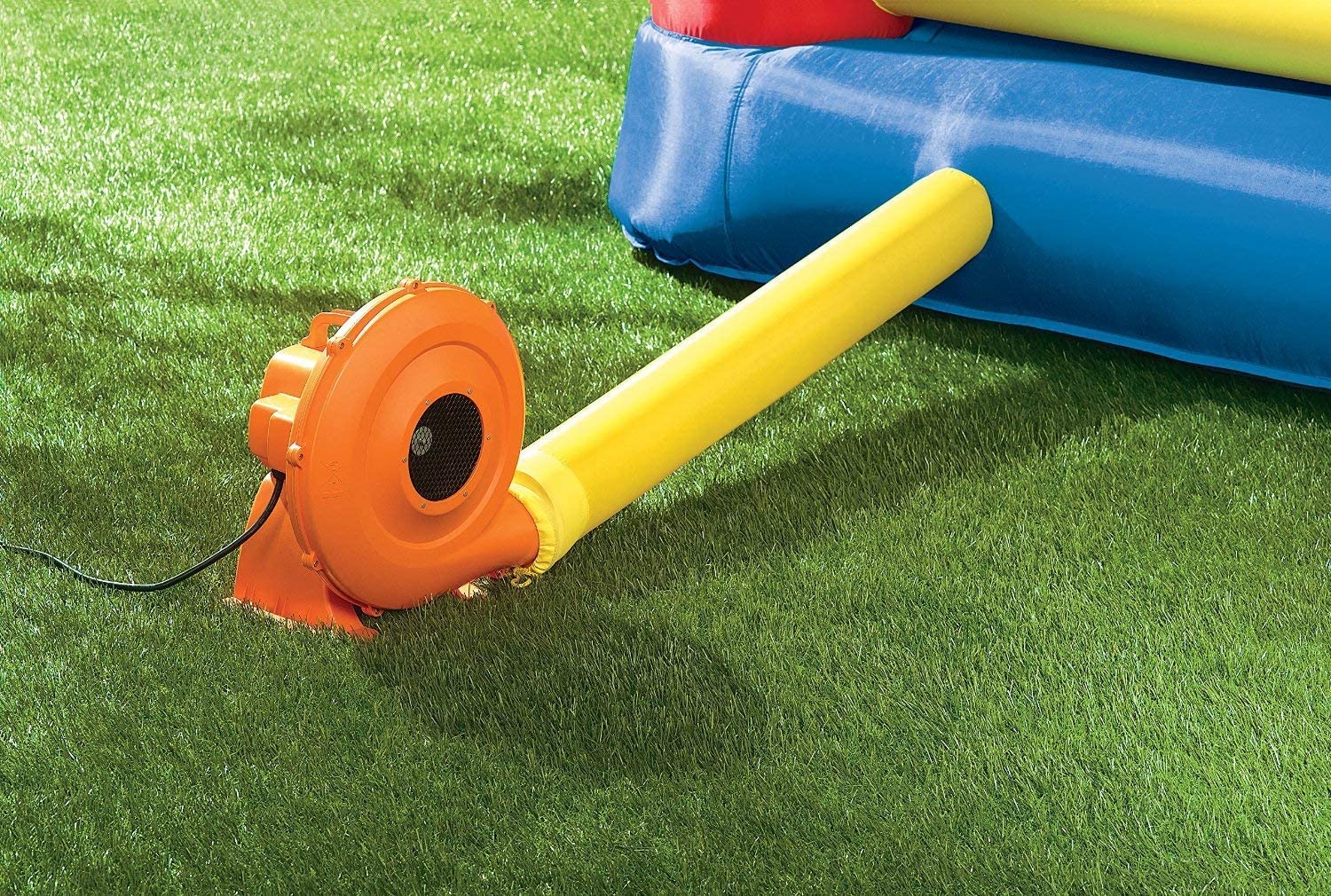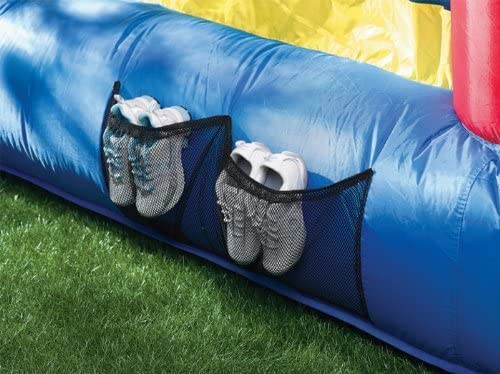 Little Tikes Jump ‘n Slide Bouncer with Arched Canopy Overhead Cover. Plus Heavy Duty Blower. Stakes. Repair Patches. and Storage Bag 3-Kid Capacity. Ages 3-8 Years