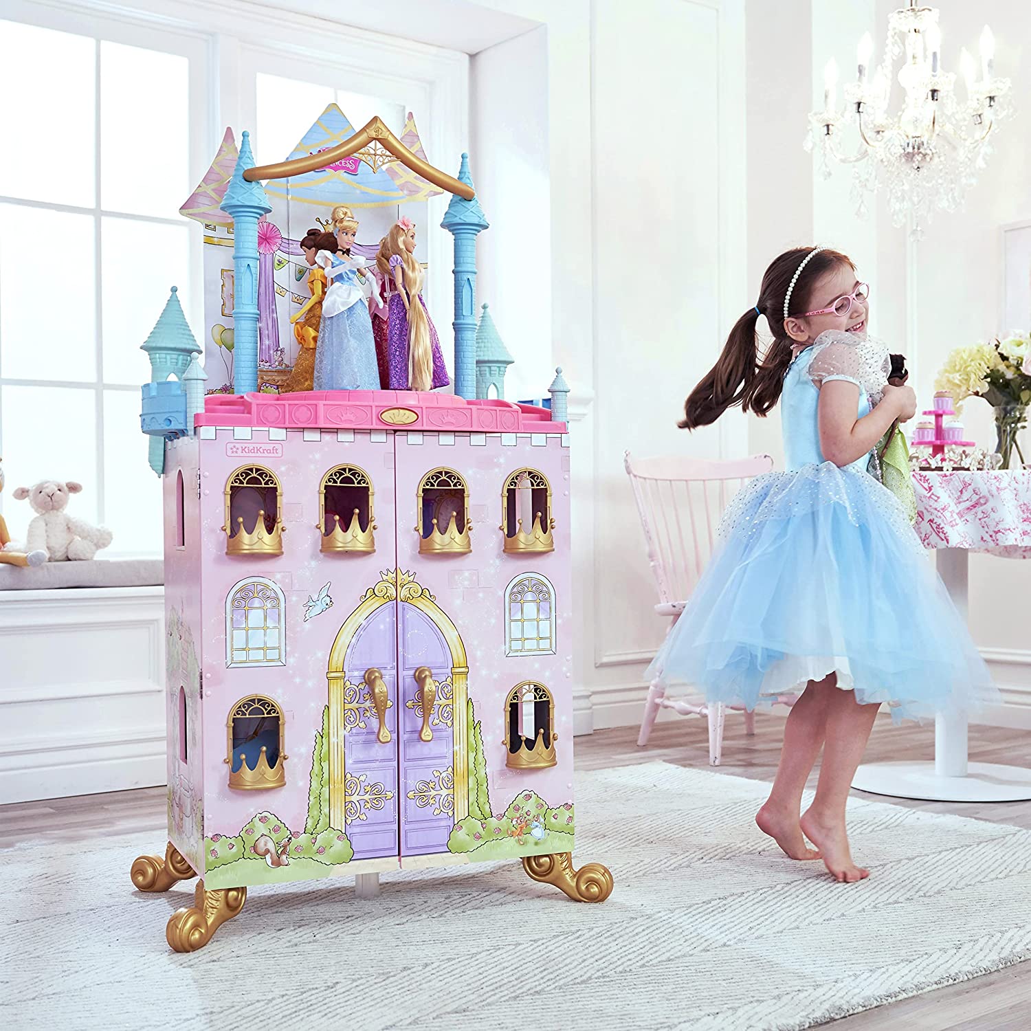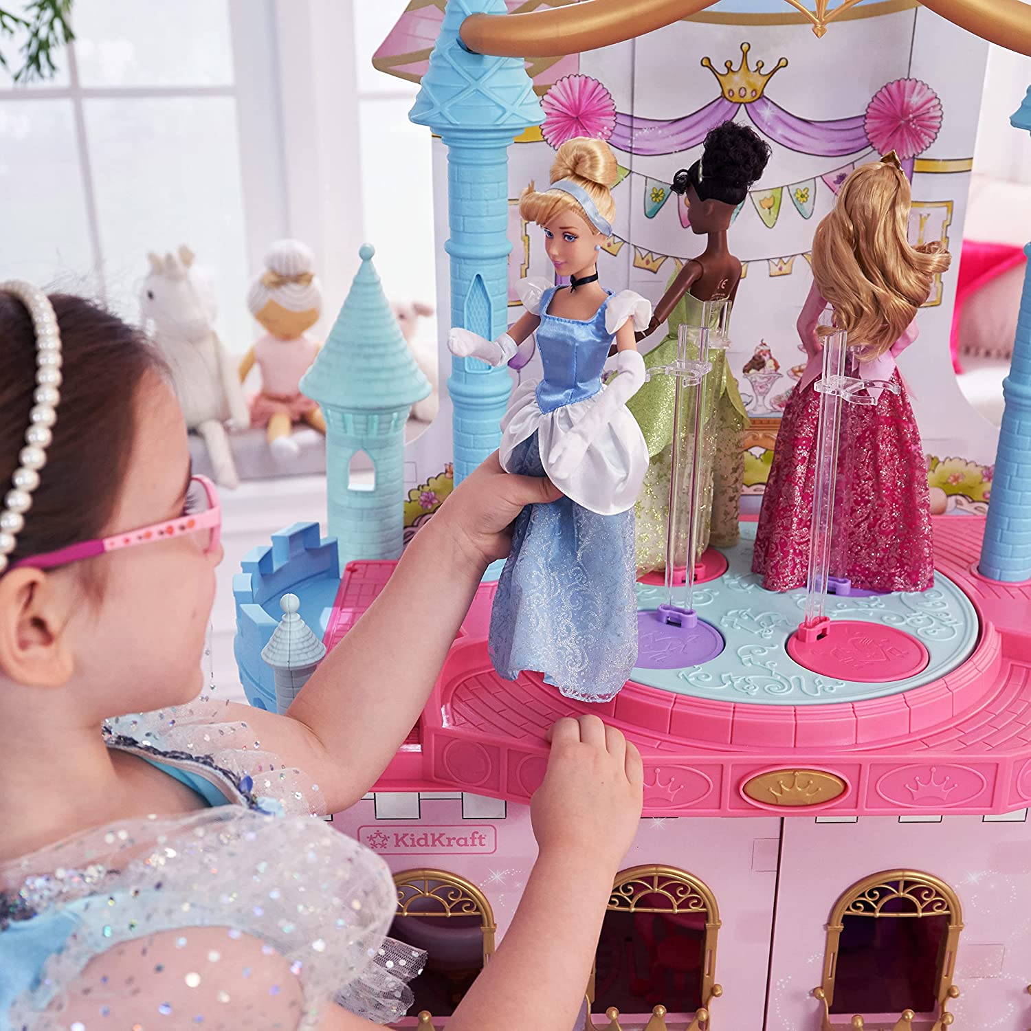 KidKraft Disney Princess Dance & Dream Wooden Dollhouse. Over 4-Feet Tall with Sounds. Spinning Dance Floor and 20 Play Pieces. Gift for Ages 3+ . Pink
