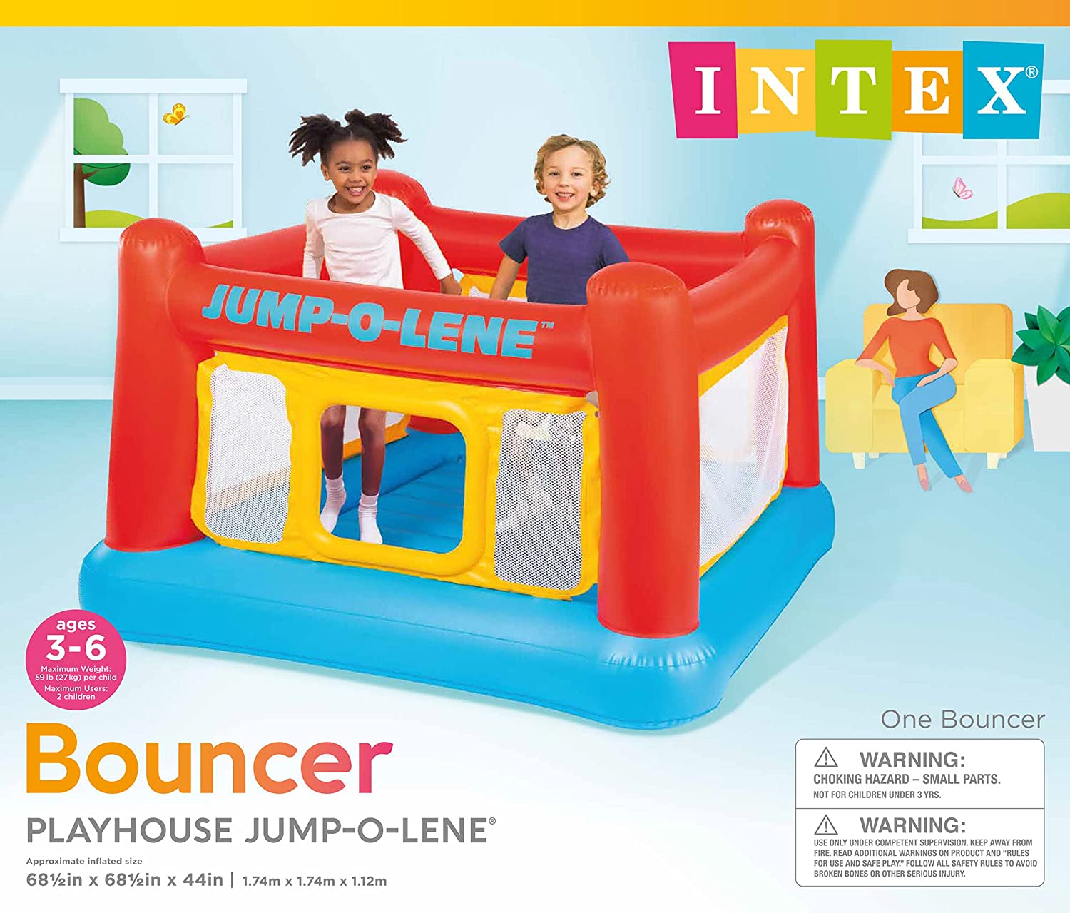 Intex Inflatable Jump-O-Lene Playhouse Trampoline Bounce House for Kids Ages 3-6 Pool Red/Yellow. 68-1/2″ L x 68-1/2″ W x 44″ H
