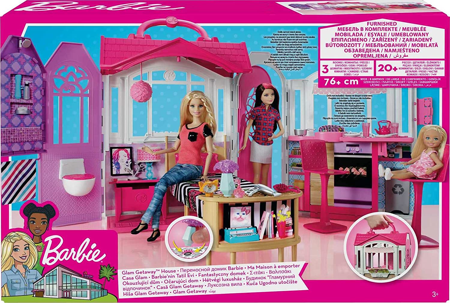 Barbie Glam Getaway Portable Dollhouse. 1 Story with Furniture. Accessories and Carrying Handle. for 3 to 7 Year Olds