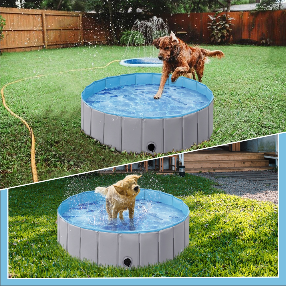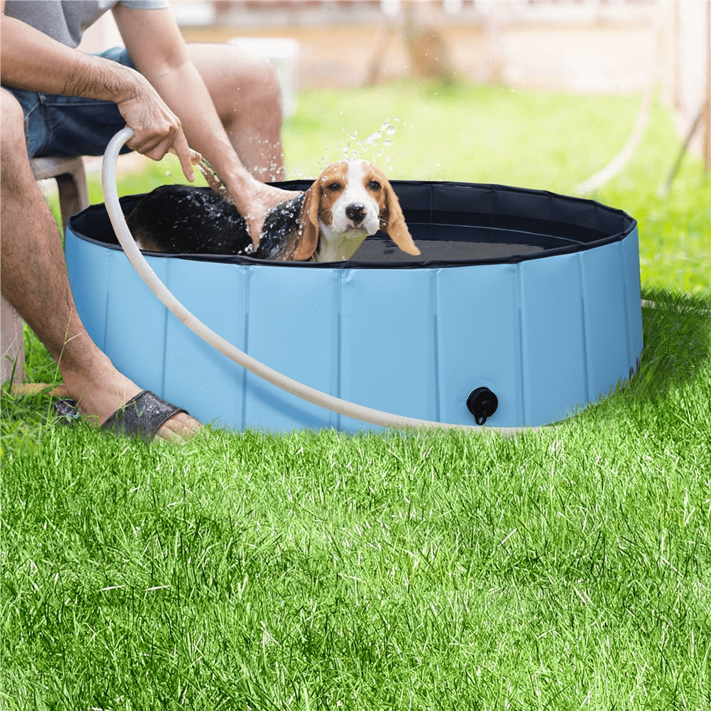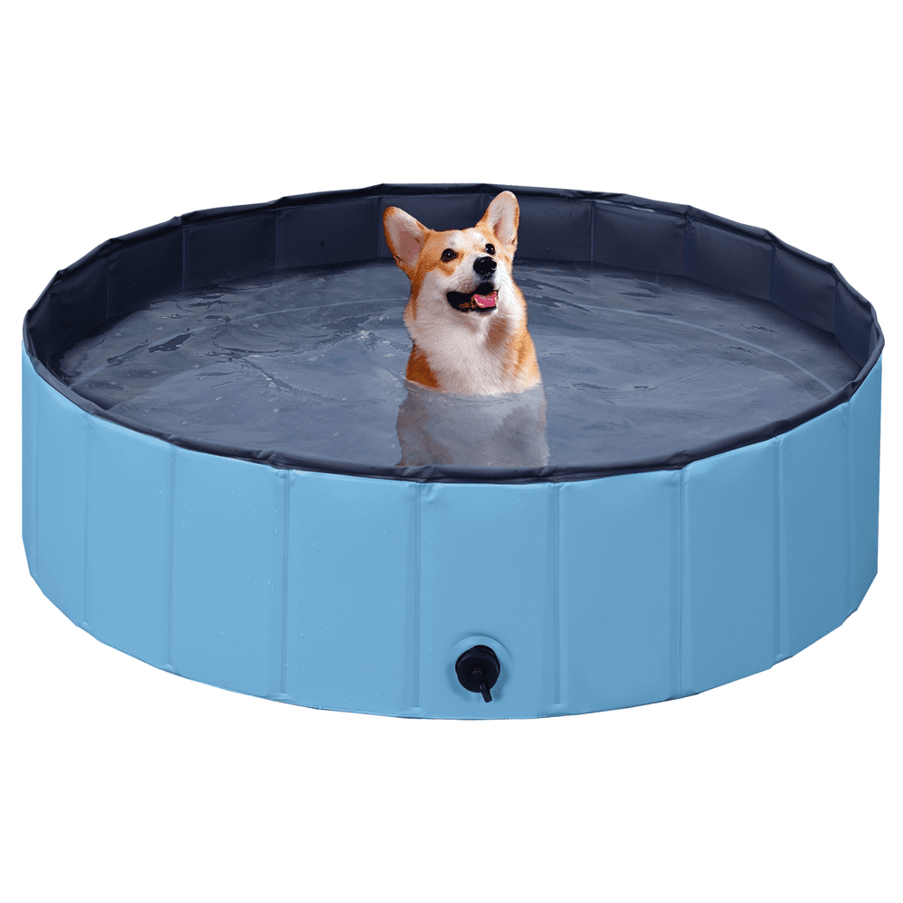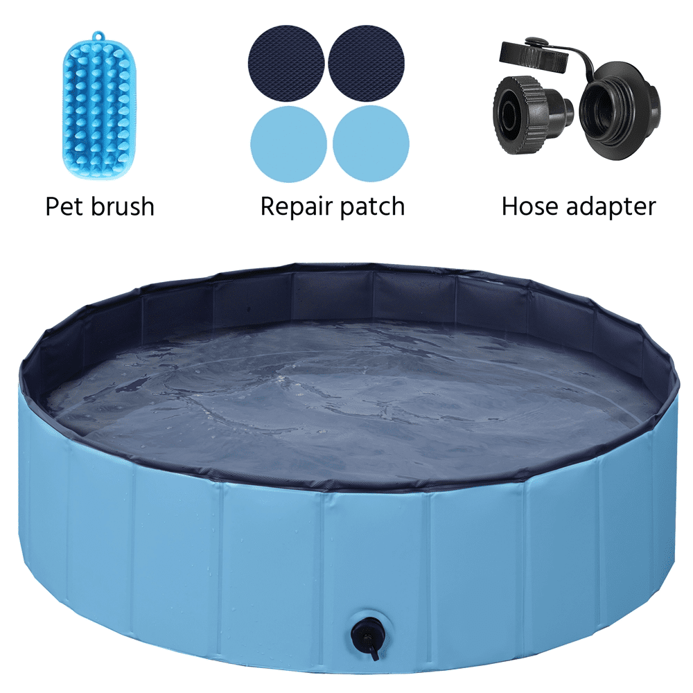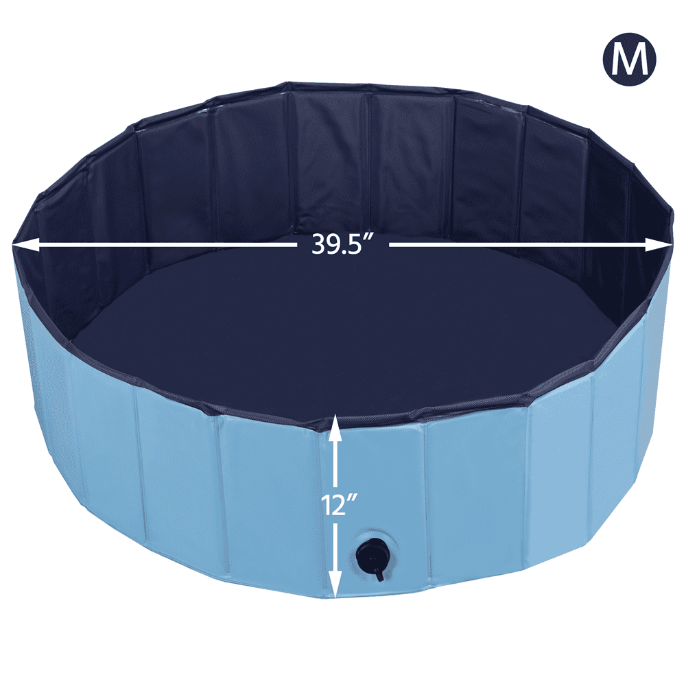 SmileMart Foldable Pet Swimming Pool Wash Tub for Cats and Dogs. Blue. Medium. 39.4″
