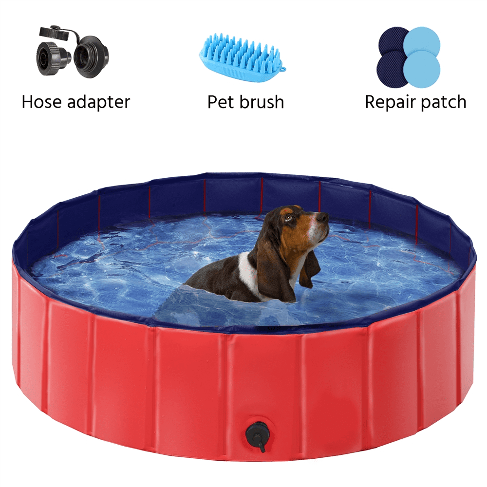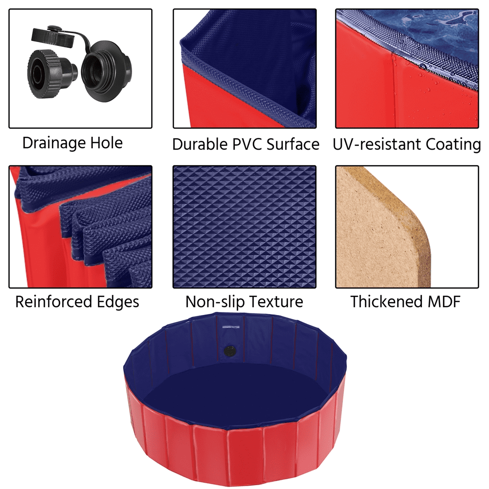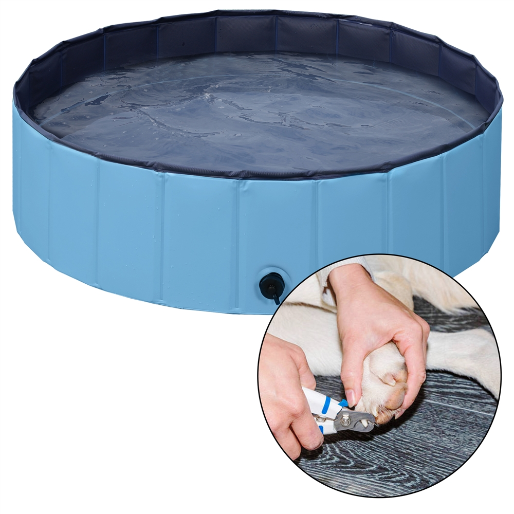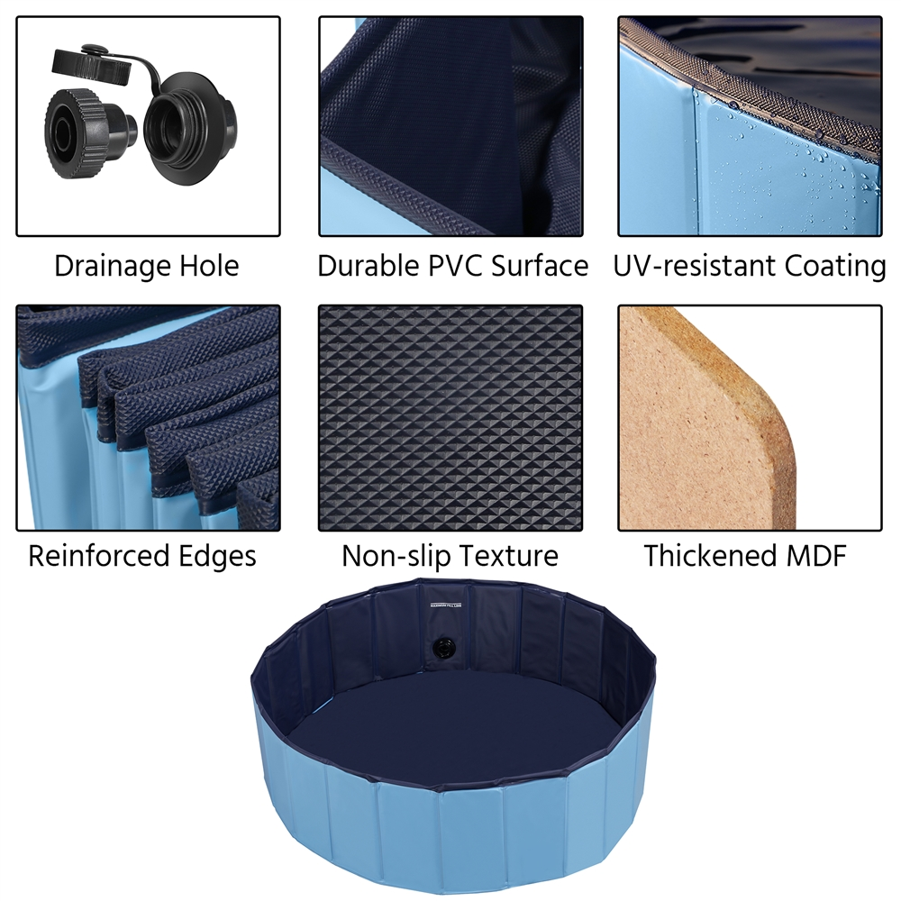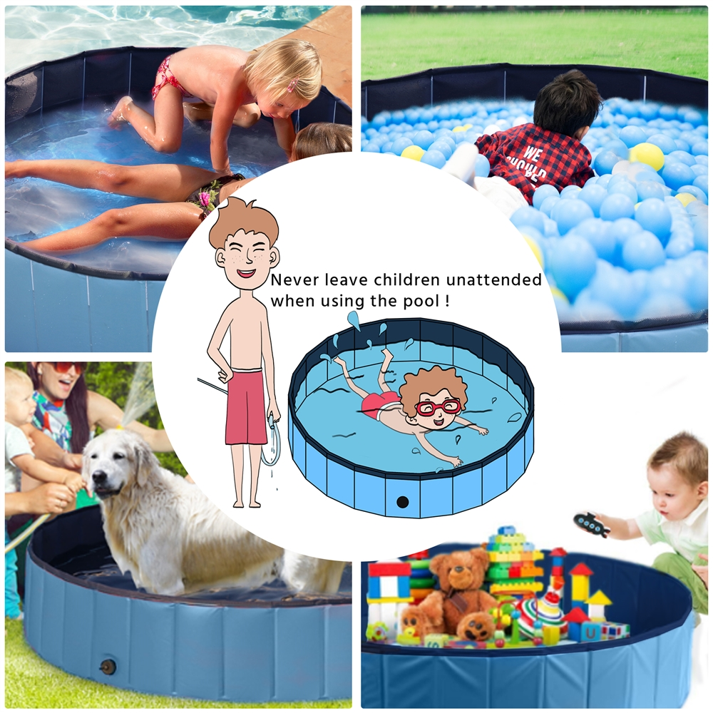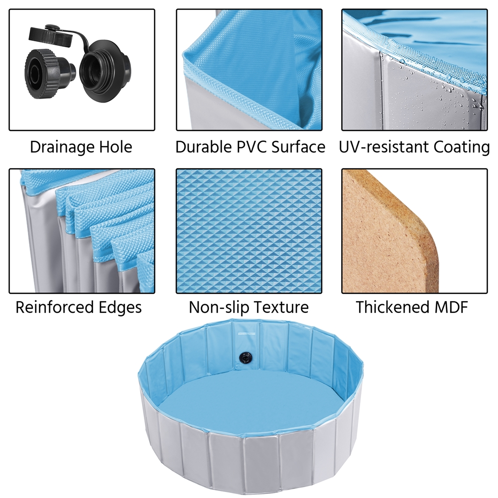 SmileMart Foldable Pet Swimming Pool Wash Tub for Cats and Dogs. Blue. Medium. 39.4″