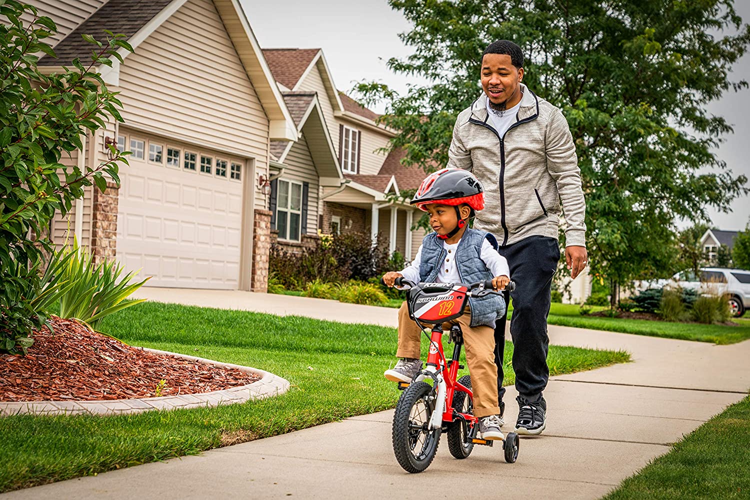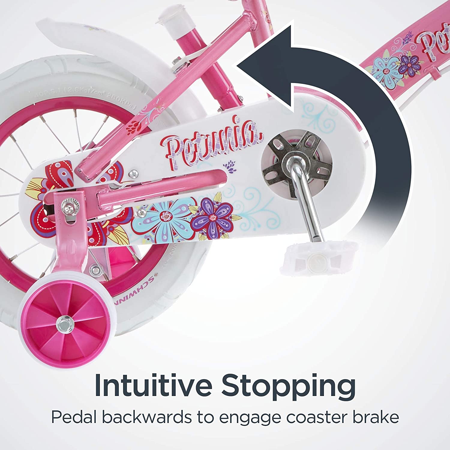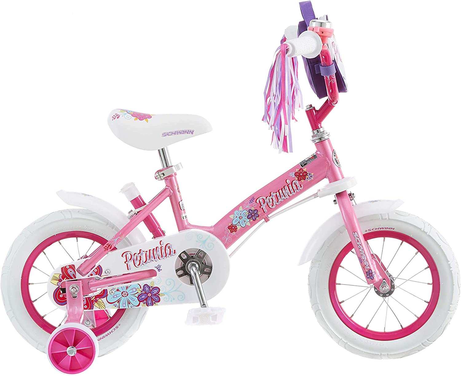 Schwinn Grit and Petunia Steerable Kids Bike. Boys and Girls Beginner Bicycle. 12-Inch Training Wheels. Easily Removed Parent Push Handle with Water Bottle Holder for Perfect for Young Beginners. Pink