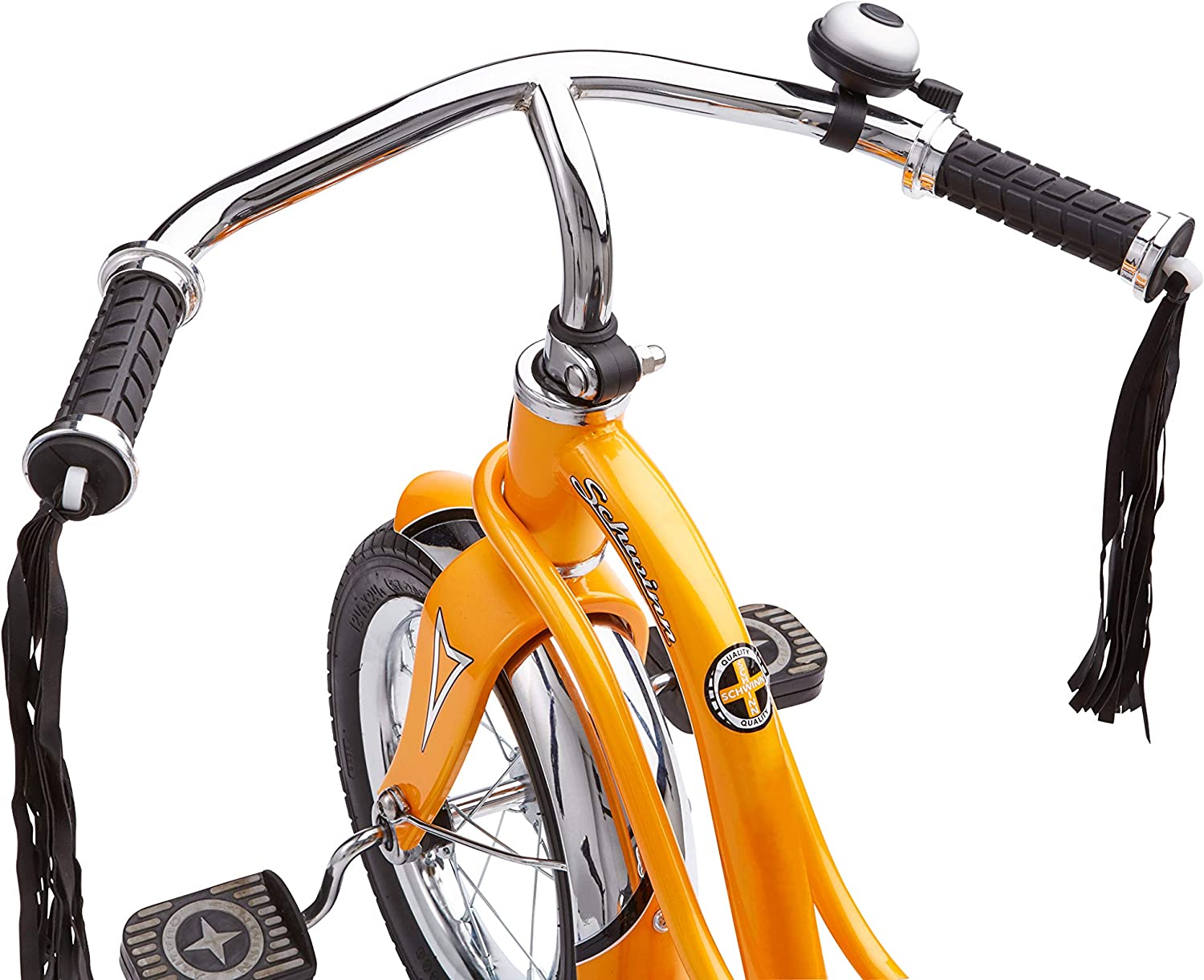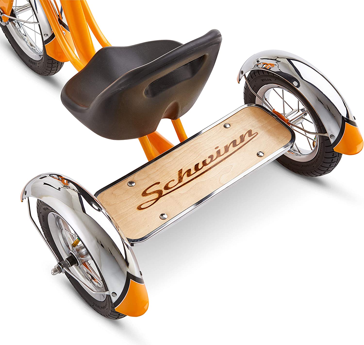 Schwinn Roadster Bike for Toddlers. Kids Classic Tricycle. Boys and Girls Ages 2 - 4 Years Old. Steel Trike Frame. Rear Deck Made of Genuine Wood. & Fabric Tassels. Orange