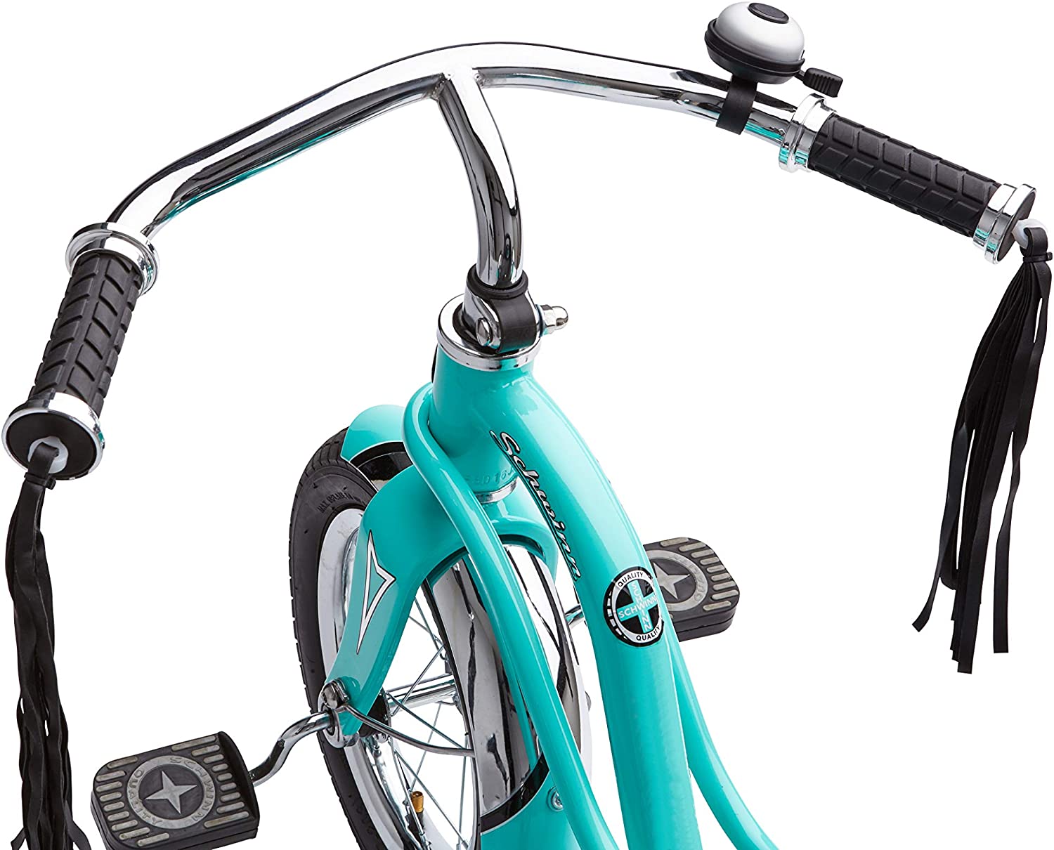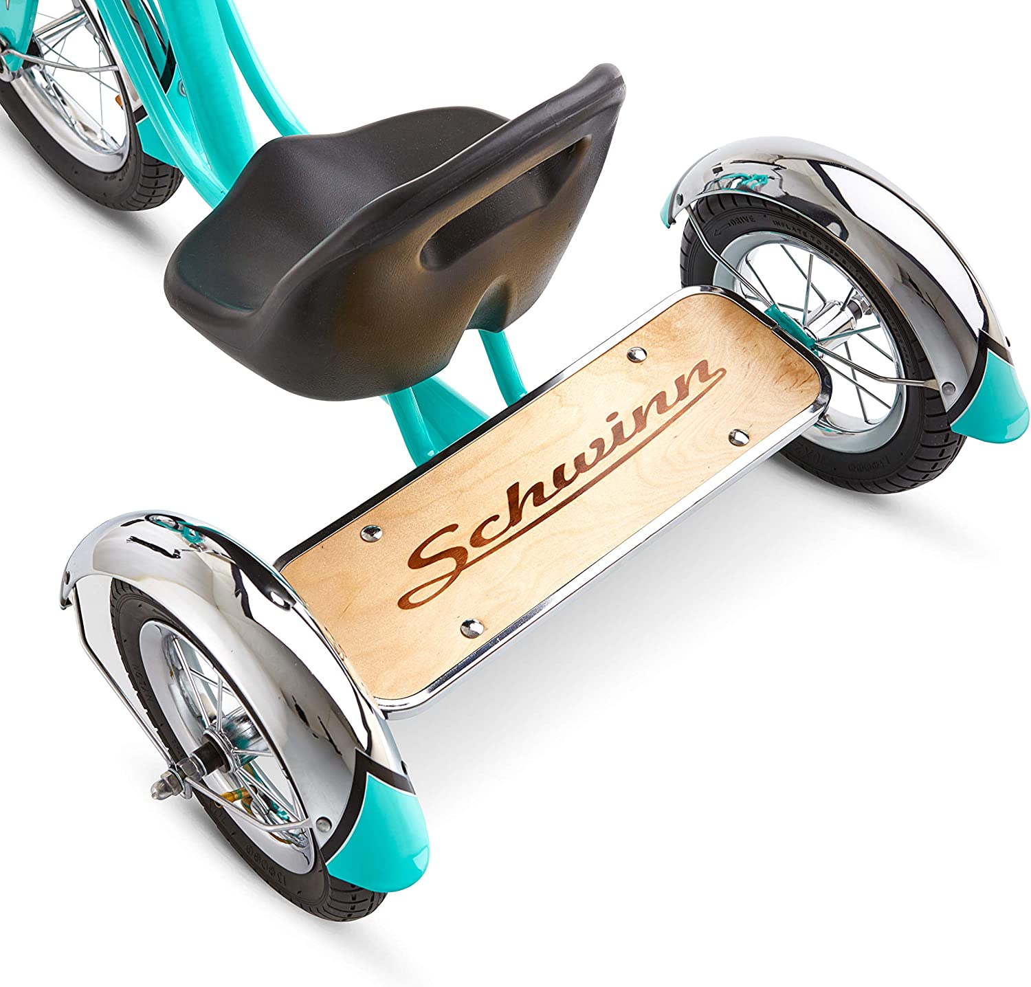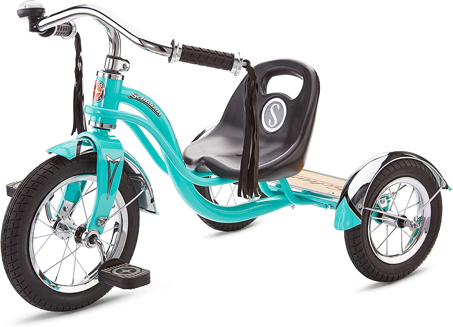 Schwinn Roadster Bike for Toddlers. Kids Classic Tricycle. Boys and Girls Ages 2 - 4 Years Old. Steel Trike Frame. Rear Deck Made of Genuine Wood. & Fabric Tassels. Teal